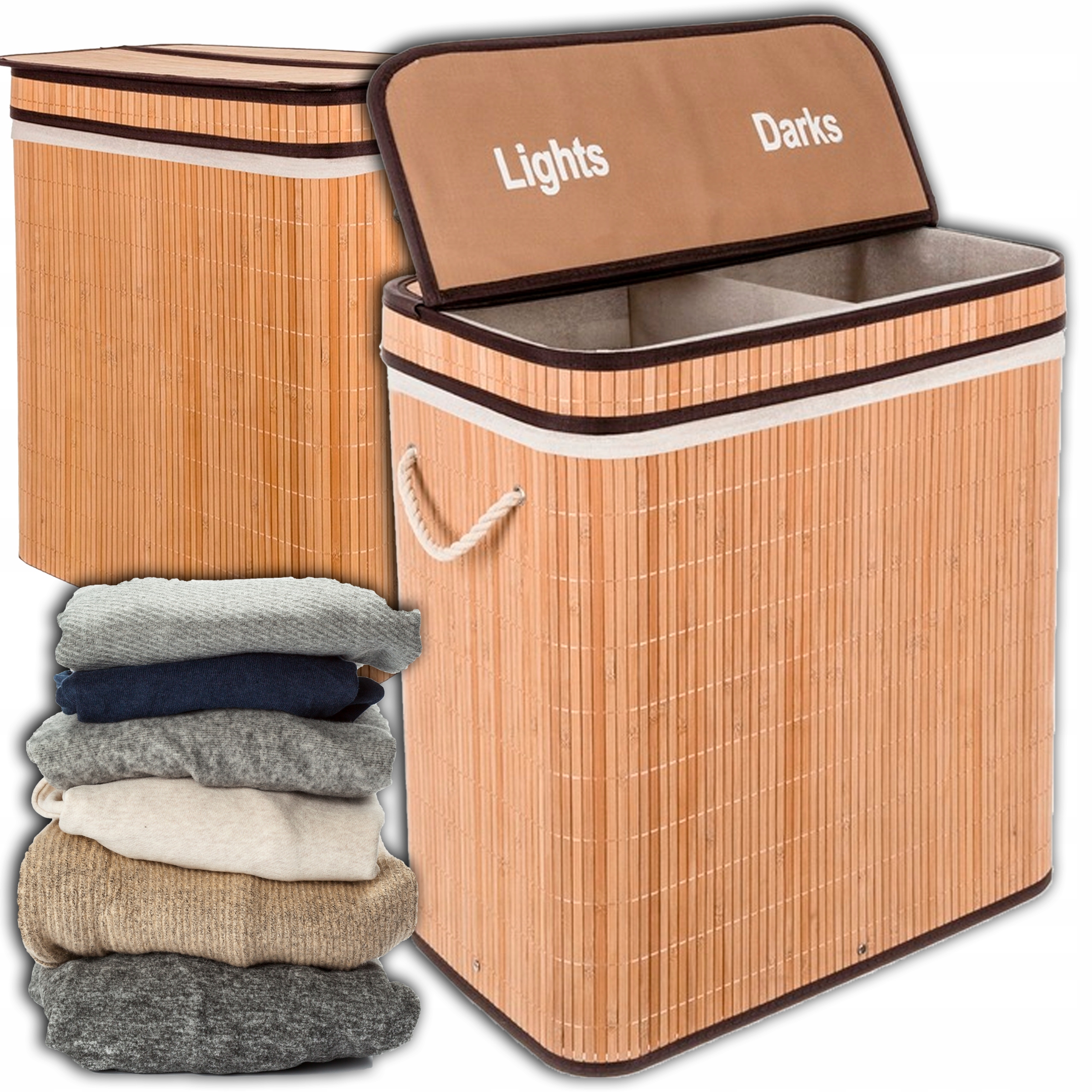 корзина бамбука Bamboo Большой двух -хамбер большие 2 камеры 100 л для нижнего белья h1>