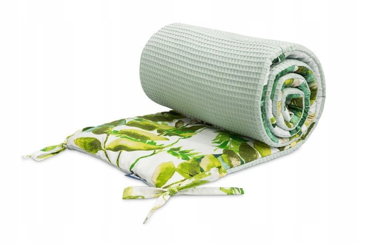 Тонкий чехол для кроватки Sensillo является альтернативой толстым и тяжелым чехлам, обычно используемым в детских кроватках. детские кроватки. Тонкий наполнитель из антиаллергенной ваты обеспечивает адекватную изоляцию, защищает ребенка от травм при перемещении по кровати, а главное, безопасен и сводит к минимуму риск удушья. Уникальный внешний вид протектора состоит из комбинации двух материалов. Одна сторона изготовлена из мягкого и приятного на ощупь хлопка с вафельной структурой, другая - из хлопка с красочным принтом. Обе ткани сертифицированы Oeko-Tex. Вшитые ленты крепления через каждые 30 см обеспечивают правильное удержание протектора.
