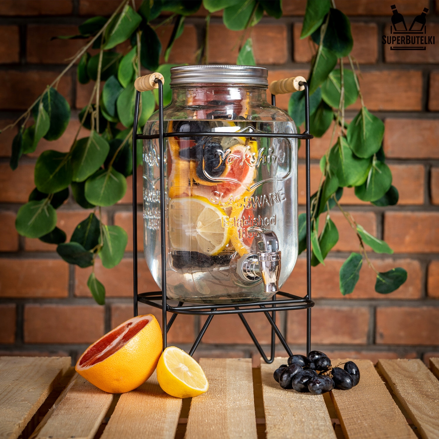 Сосуд из толстого стекла прекрасно выполнит обе функции в вашем доме. Используйте банку объемом 4 л с крышкой и краном для ликеров, приготовления пунша, холодного чая, сангрии или румтопфа.