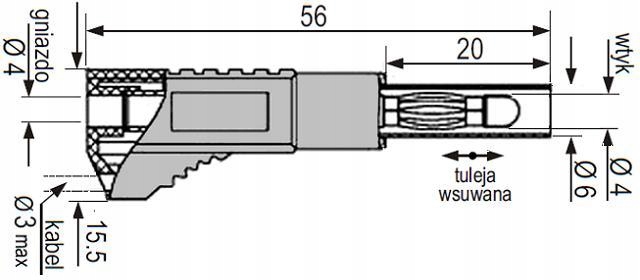 - Версия заглушки: с осевым сокетом ø4mm, подвижной рукав