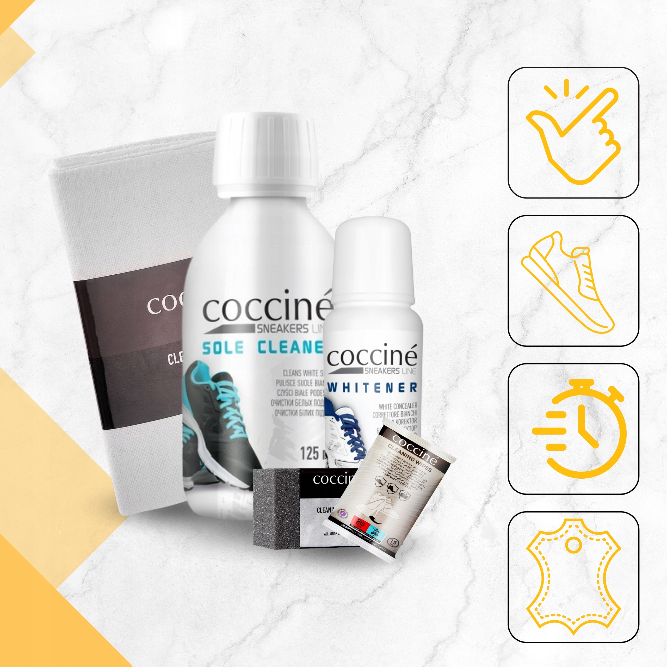 Coccine Clean Wipe Очистка носовой платок - это практическое и эффективное решение для удаления грязи из обуви и других предметов из зерновой кожи, замши и нубука. Пропившись в тонком, но эффективном чистящем агенте, быстро удаляет пыль, грязь, жир и остатки других препаратов. Его можно использовать не только для обуви, но и для обивки, мебели, курток и кожаных аксессуаров.