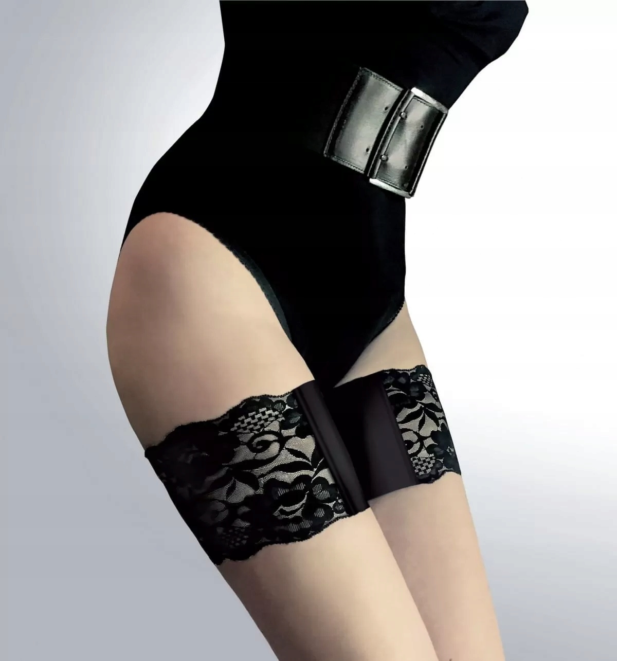 Кружевной пояс на бедре для предотвращения ссадин и натирания. Внутренняя вставка выполнена из гладкой тесьмы, что делает ношение повязки еще более комфортным и приятным, сохраняя при этом женственный характер.