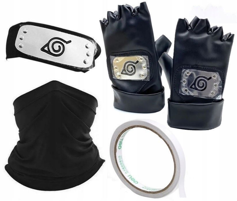 БАНДАНД ПЕРЧАТКИ МАСКА ЛЕНТА КАКАШИ ХАТАКЕ НАРУТО АНИМЕ КОСПЛЕЙ КОСТЮМ 4 ШТ.