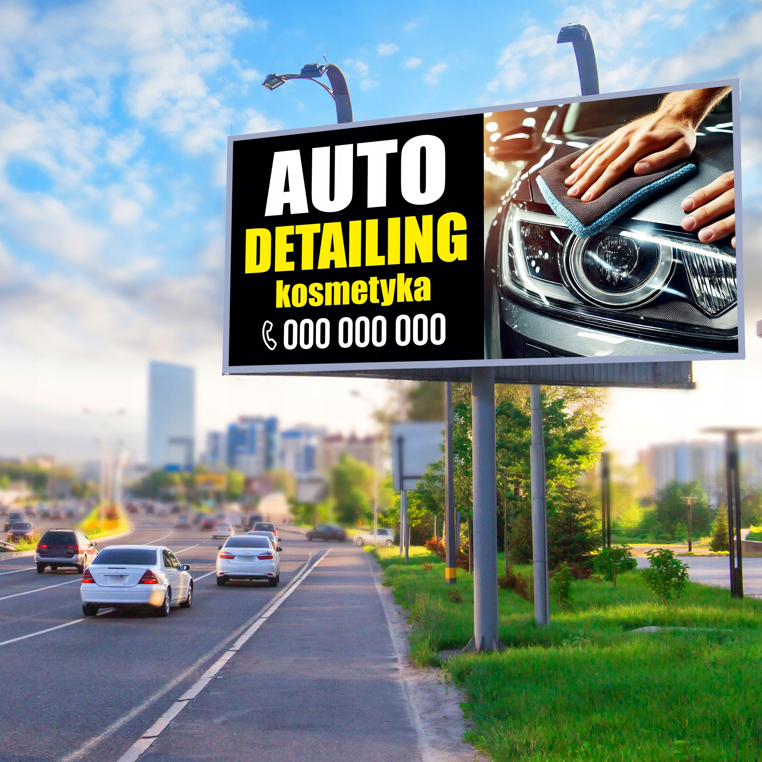 Этот большой красочный баннер (2х1м) с надписью "АВТОДЕТЕЙЛИНГ" и вашим номером телефона - идеальный способ привлечь внимание клиентов и выделить ваш бизнес. Это отличный способ выделить вашу компанию и показать, что вы предлагаете специализированные услуги, заботящиеся о каждой детали автомобиля.