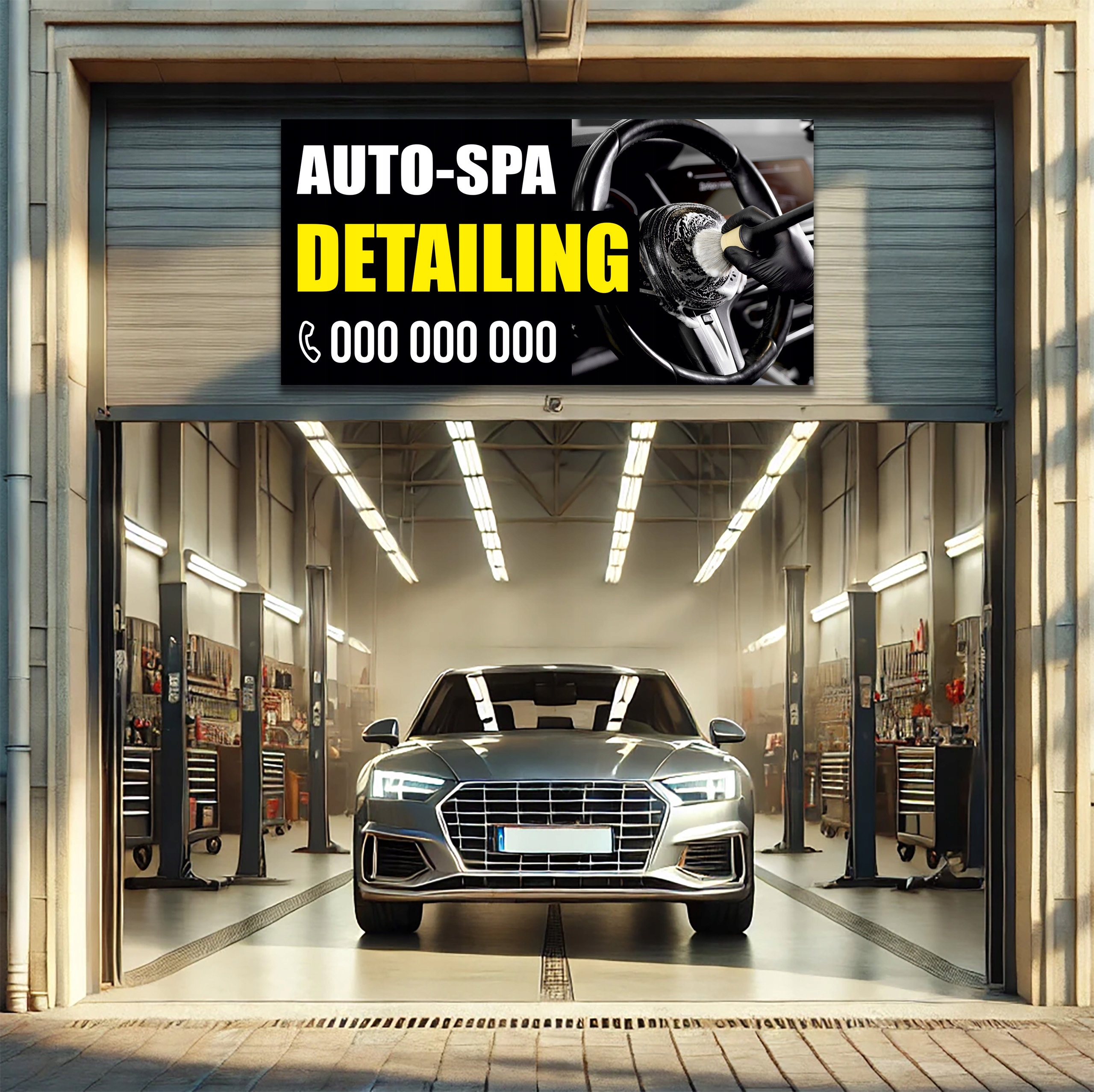 Баннер АВТО СПА ДЕТЕЙЛИНГ КОСМЕТИКА Реклама ВАШ ТЕЛЕФОН УФ брезент 2х1м