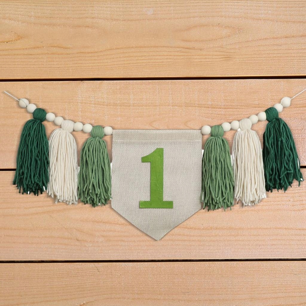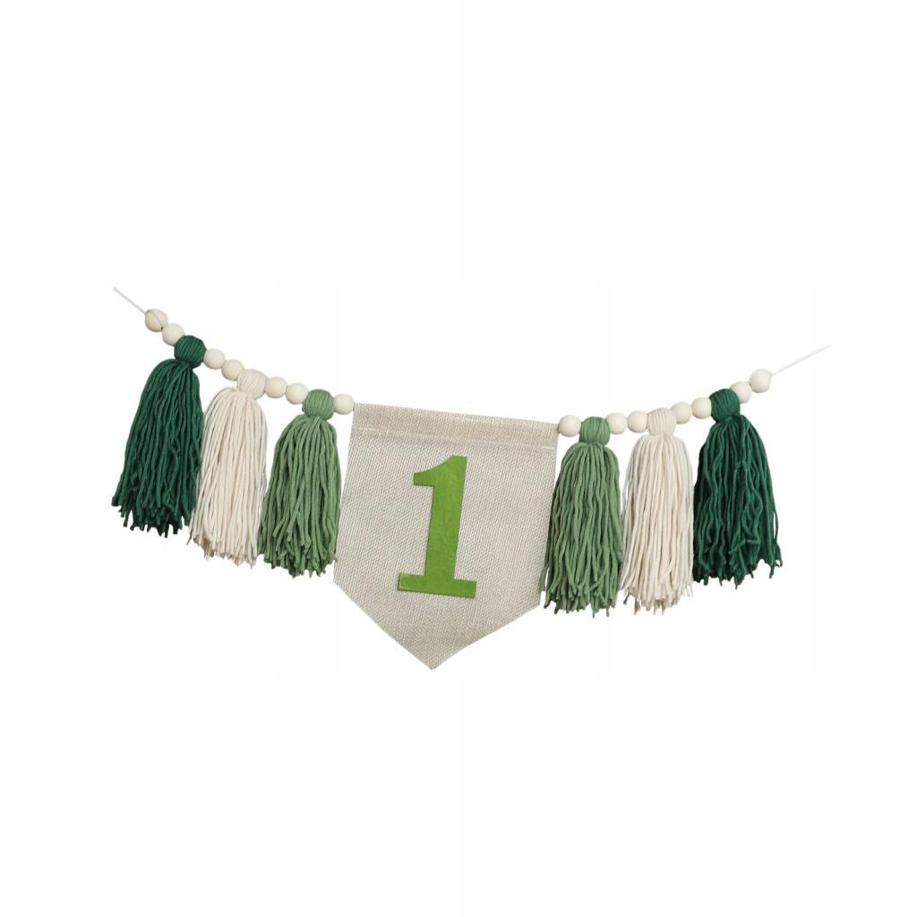 Стульчик для кормления на первый день рождения, баннер, гирлянда с кисточками и бусинами для декора детской комнаты, вечерние, зеленый