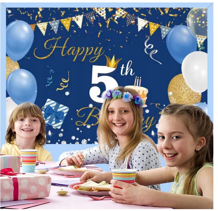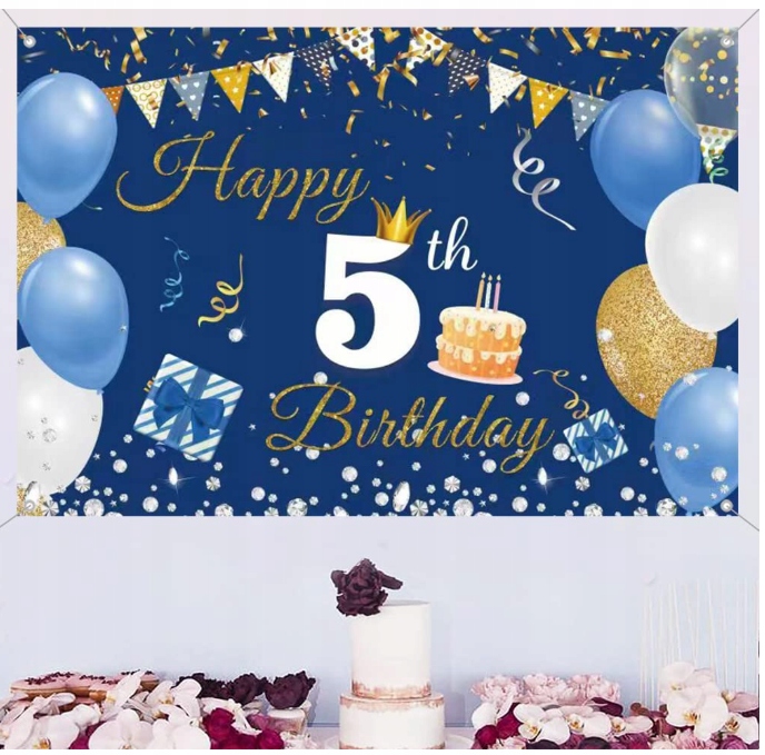 - Красивый дизайн: Баннер счастливого 5 -го дня рождения имеет синий фон, пирог, воздушный шар и знамя, добавит дополнительную атмосферу на ваш день рождения.
