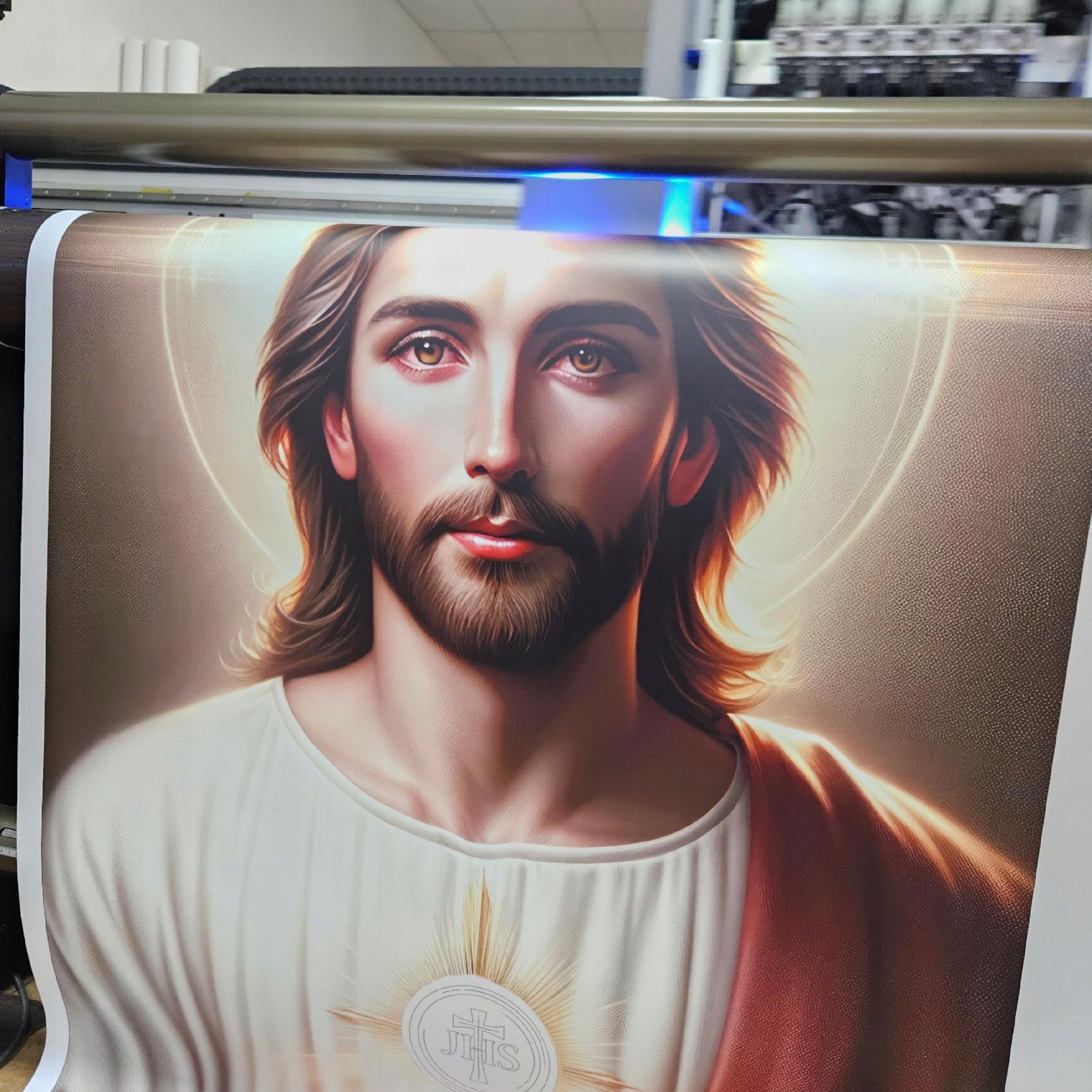 Баннер размером 100х200 см с изображением Иисуса – прекрасный способ выразить веру и почтить память страданий Христовых. Идеально подходит для украшения интерьера церквей, часовен, а также для религиозных торжеств и крестных ходов.