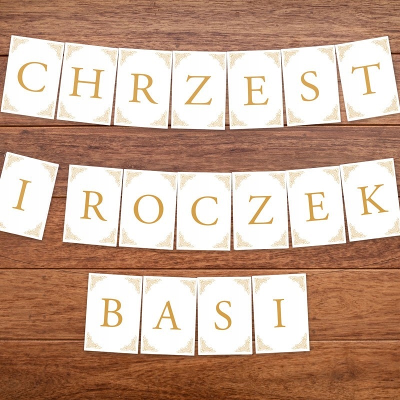 BANER girlanda Chrzest+Roczek IMIĘ dziecka ZŁOTY