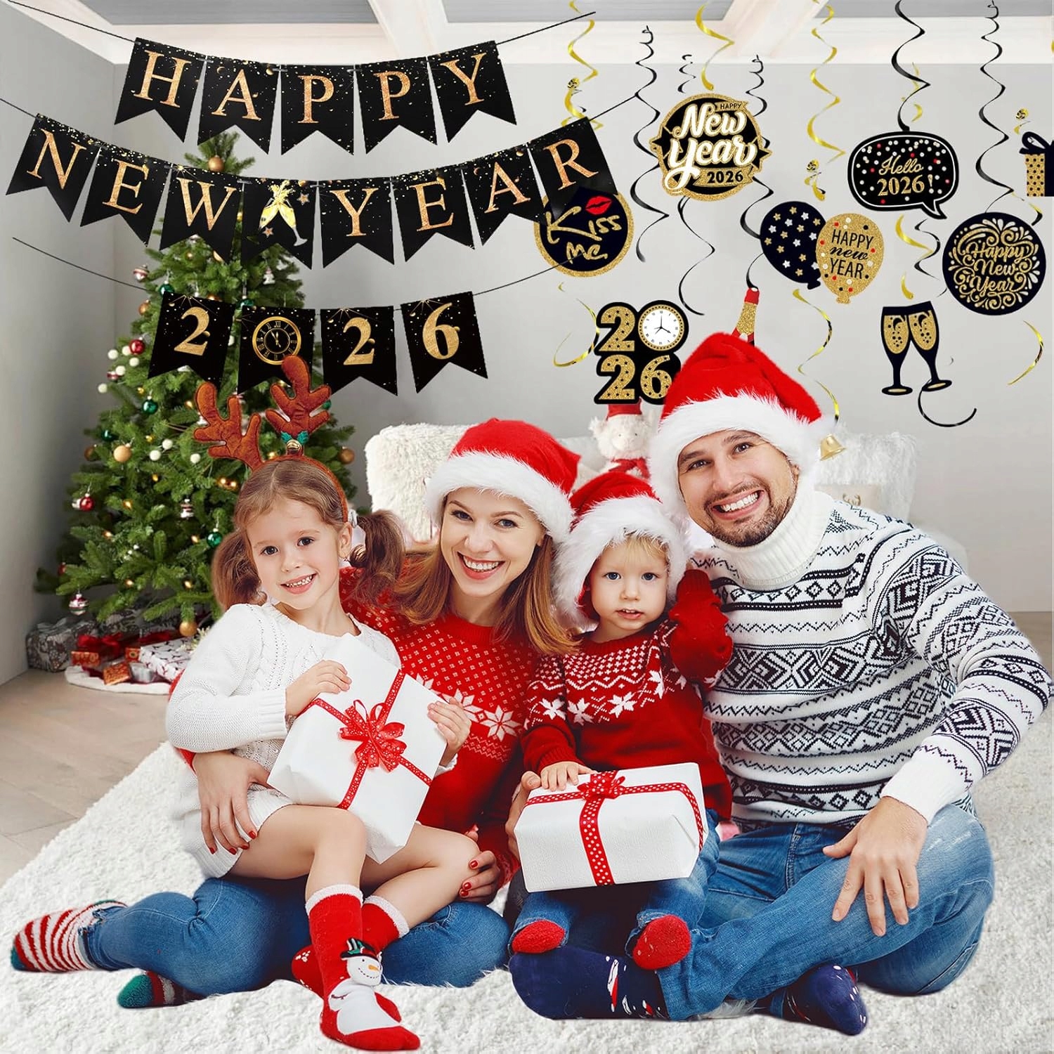 Баннер с Новым 2026 годом, Новогодние украшения, Бенгальские огни, Украшения, Гаджеты