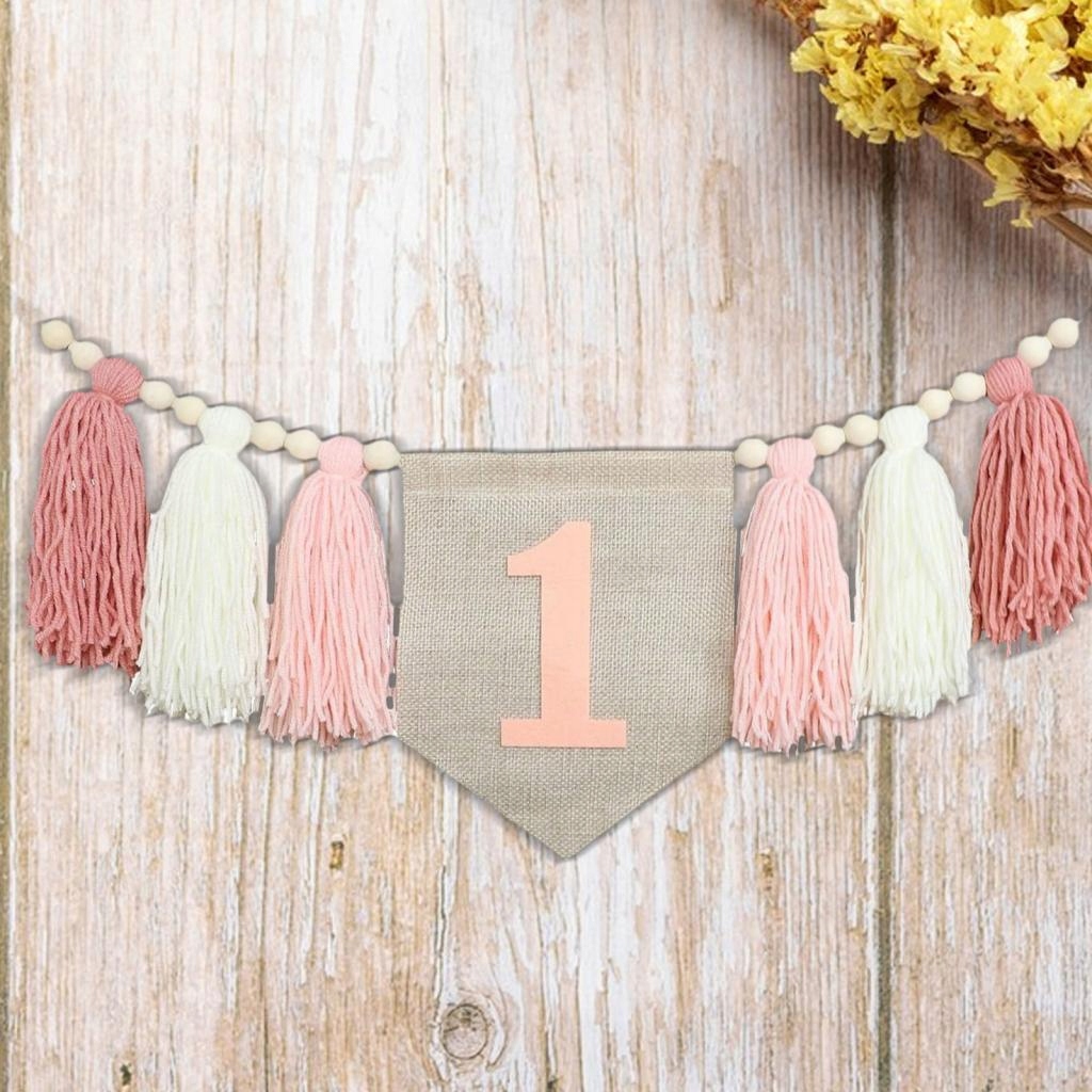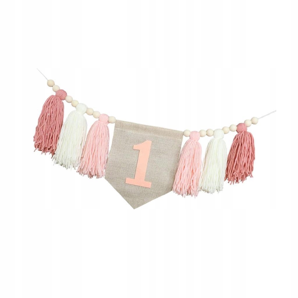 Баннер для высокого стула 1 -й день рождения, Chwost Girl и Bead, первый розовый день рождения