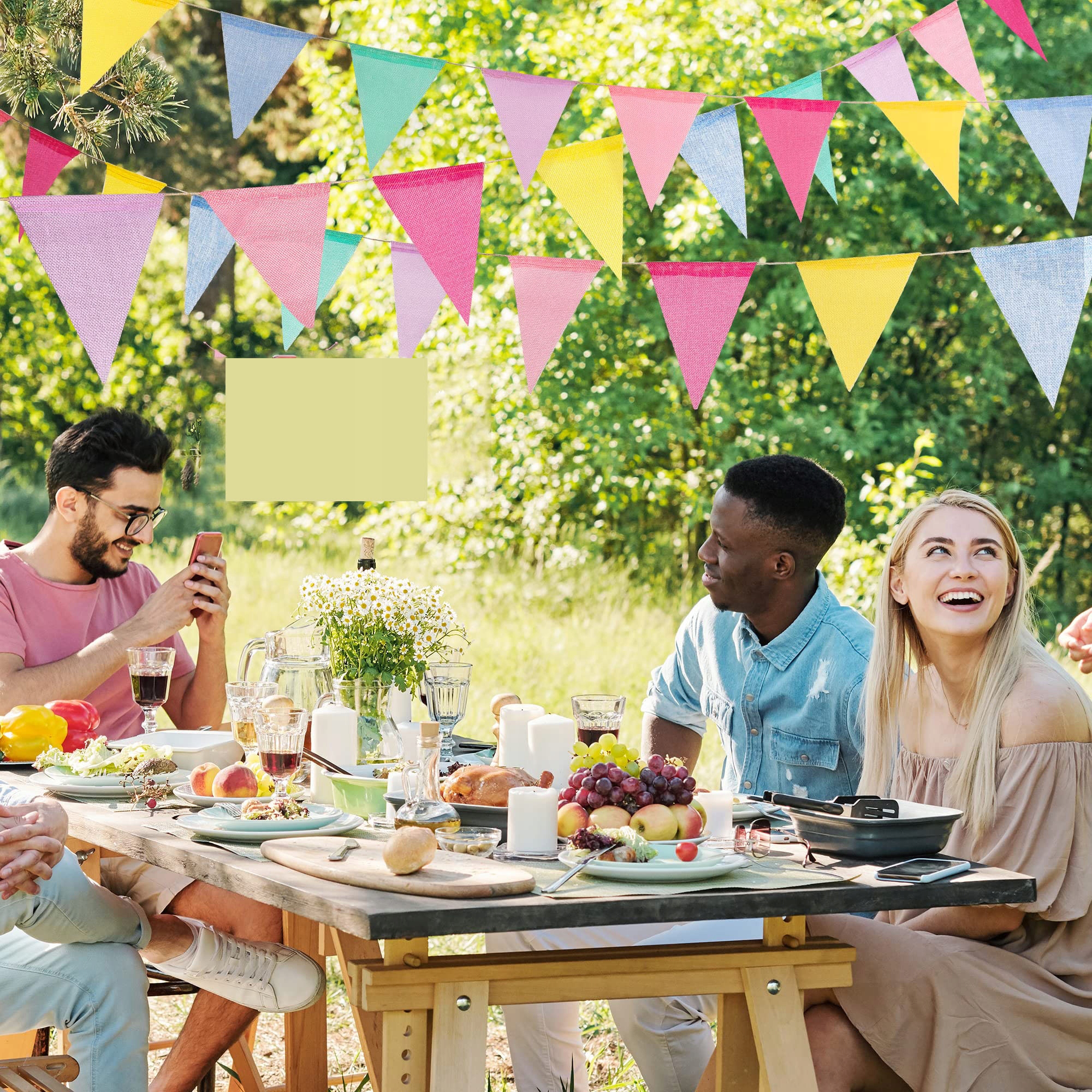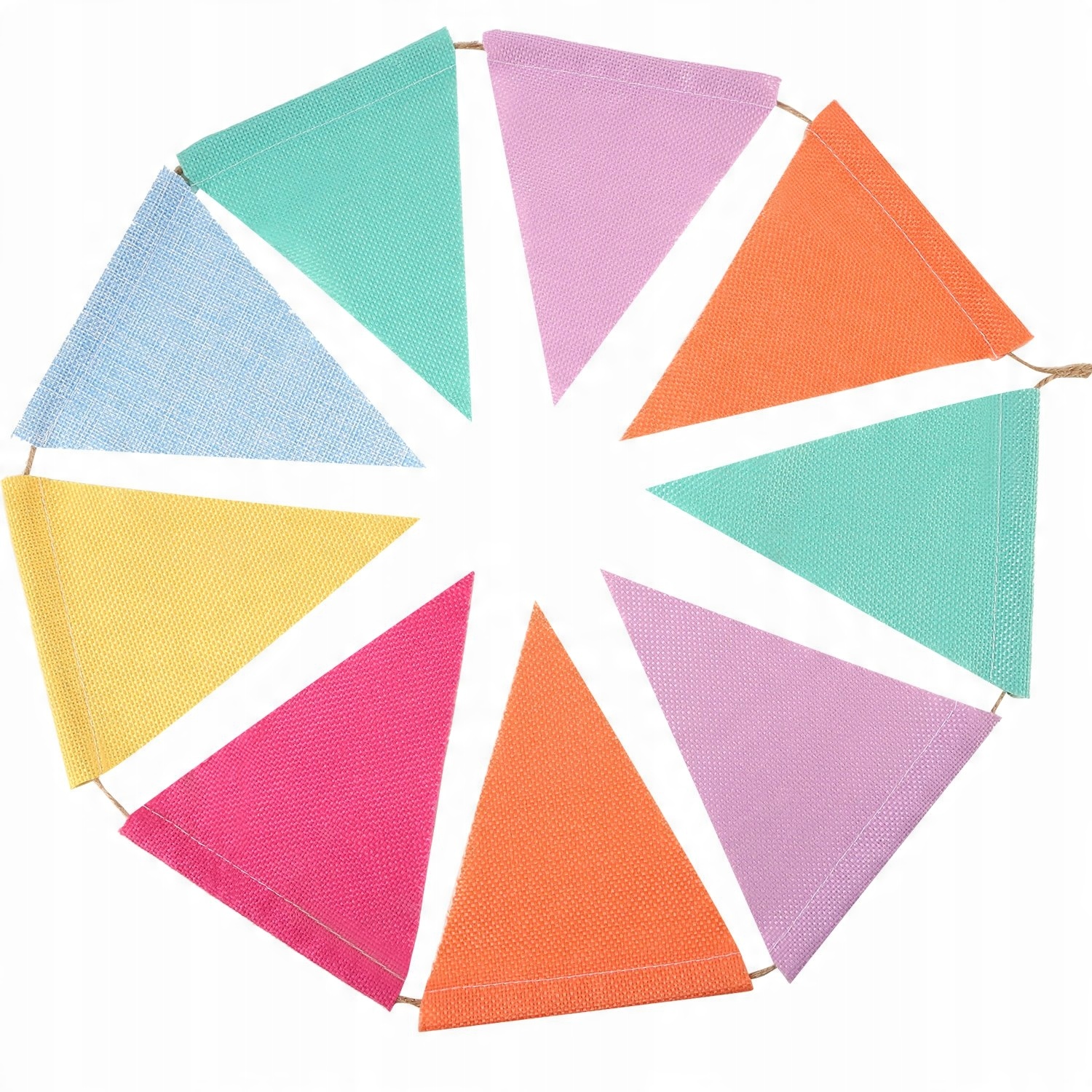 Материал: разноцветные вымпелы изготовлены из джута. , все джутовые баннеры сделаны из имитации льна. Они водонепроницаемы и не выцветают под водой и дождем. Вы также можете написать описание или букву товарного знака на этих треугольных флажках.