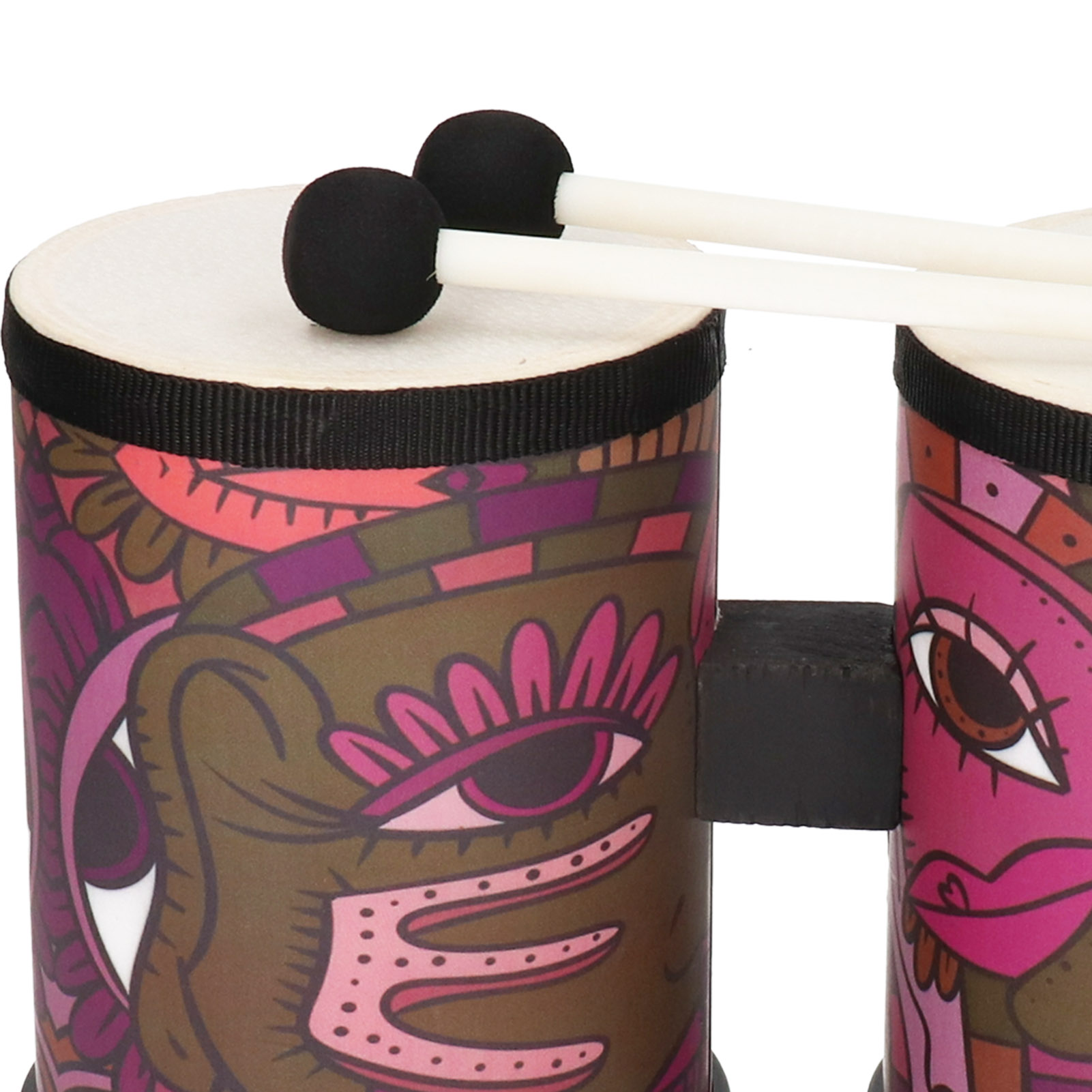 1. Двойные барабаны с высоким и низким звуком, двойные барабаны соединены металлическими винтами, поверхность скребкового барабана, барабаны высокого качества и устойчивы к ударам.
