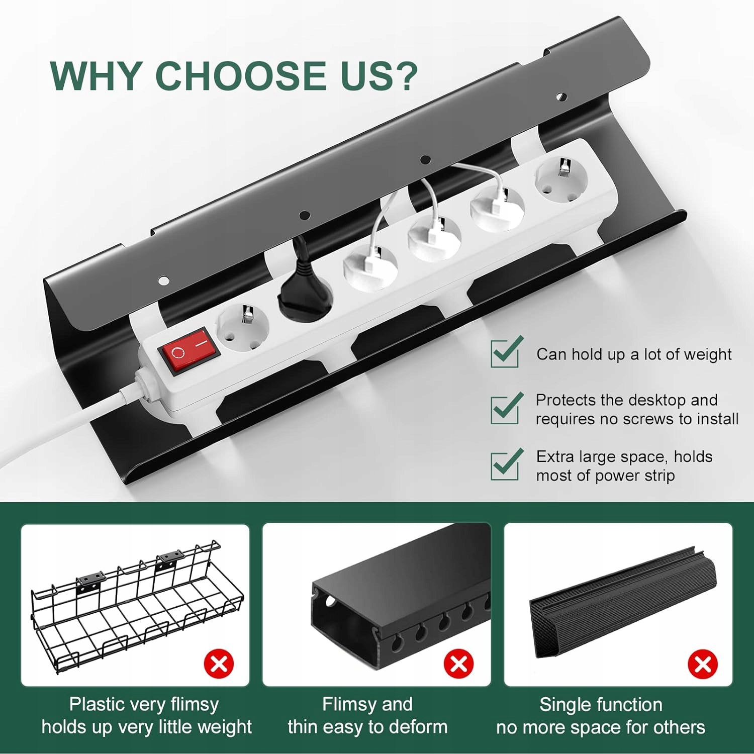 - Стабильный и прочный кабельный канал изготовлен из прочной стали, благодаря которой он выдерживает даже тяжелые нагрузки без изгиба. Грузоподъемность 5 кг. Кабельные каналы подходят для всех кабелей и размеров плагинов и могут вместить много розеток или кабелей.