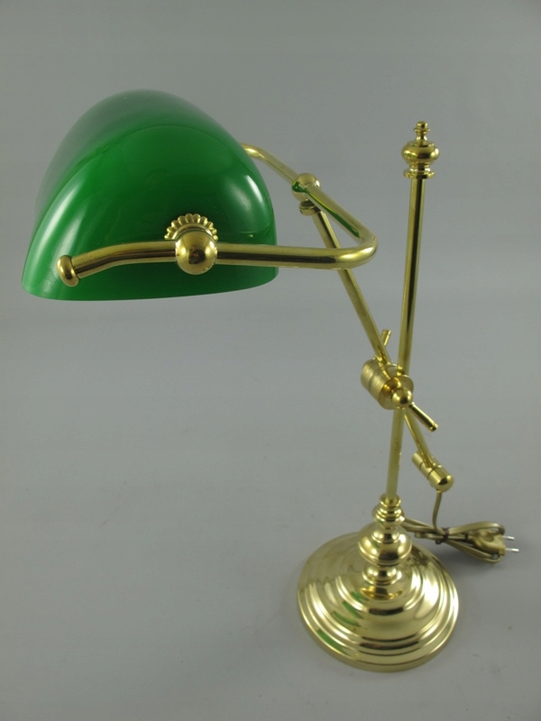Классическая латунная офисная лампа с удлиненным зеленым абажуром, называемая лампой нотариуса или банкира!