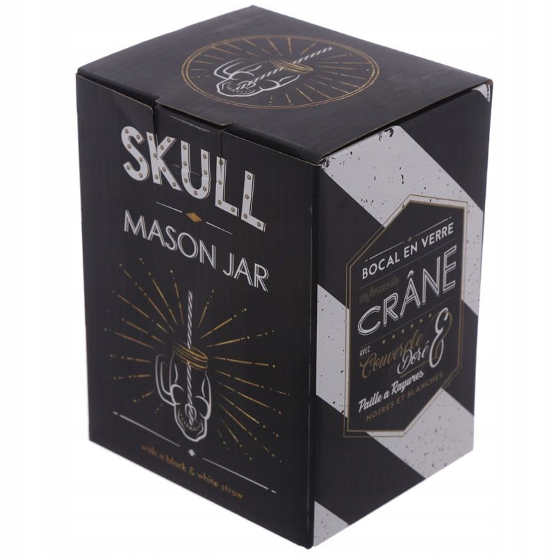 Питьевая банка-череп с металлической крышкой и трубочкой.