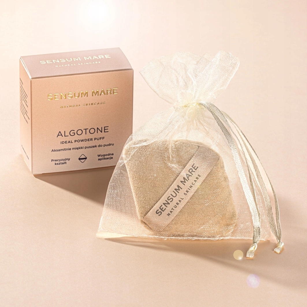 Погрузите спонж в рассыпчатую пудру ALGOTONE. Аккуратно стряхните излишки продукта и равномерно распределите его, прижимая к лицу.
