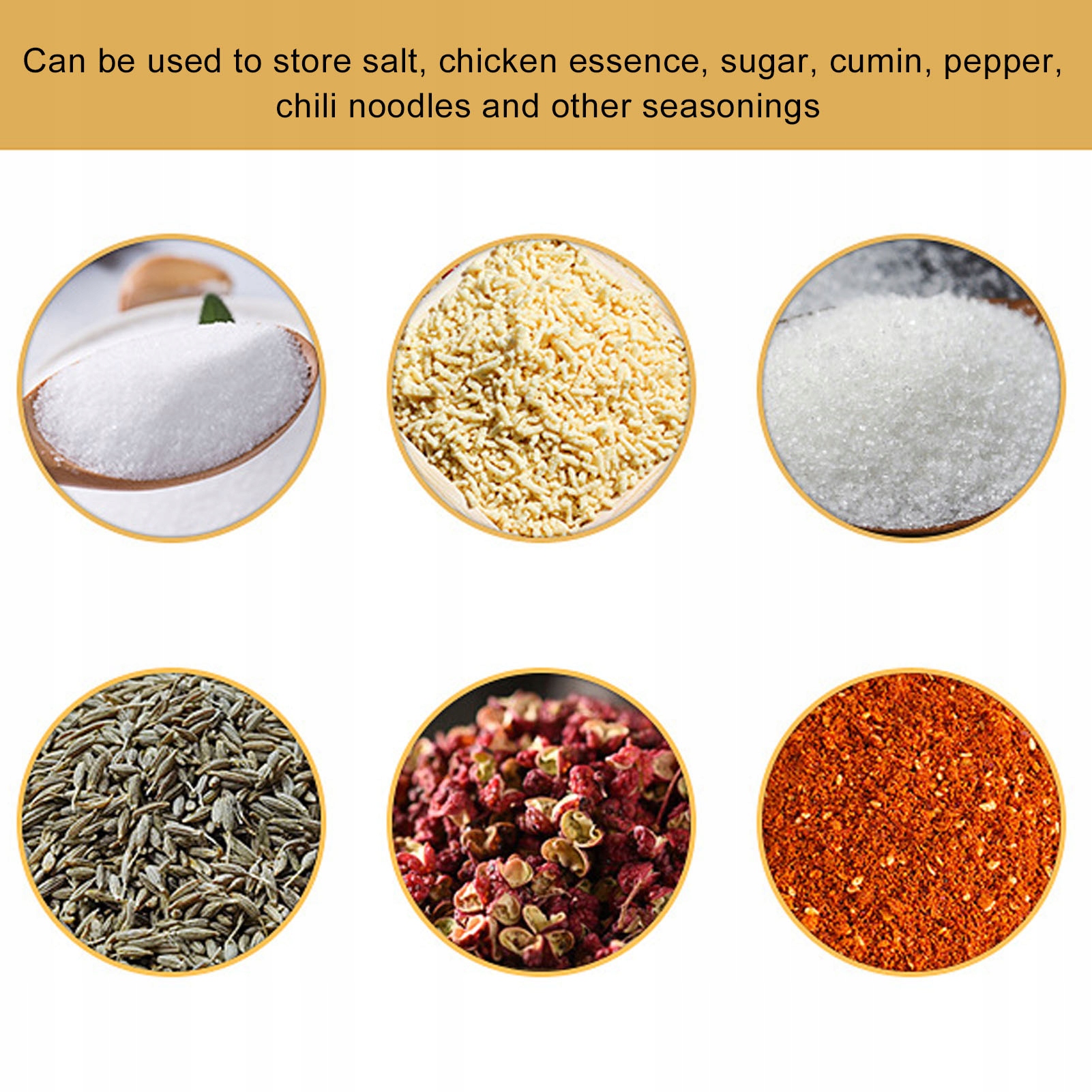 1. Нержавеющая сталь: Контейнер для приправ изготовлен из пищевой нержавеющей стали, которая консервативна, легко чистится и долговечна. Нескользящее дно, устойчивое положение, нелегко перевернуть.