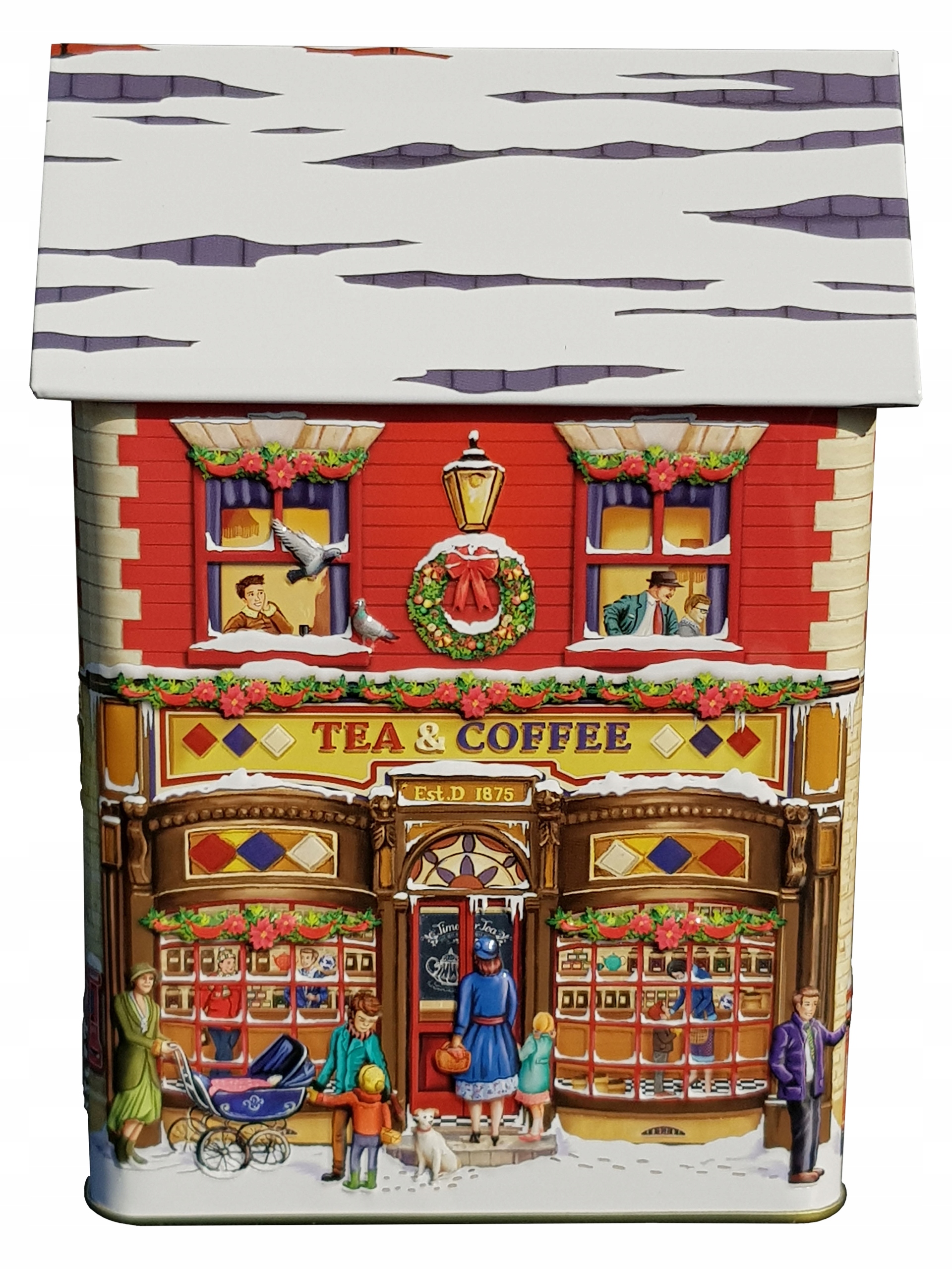 Коробка МЕТАЛЛИЧЕСКАЯ Ретро Дом 21х14х7см