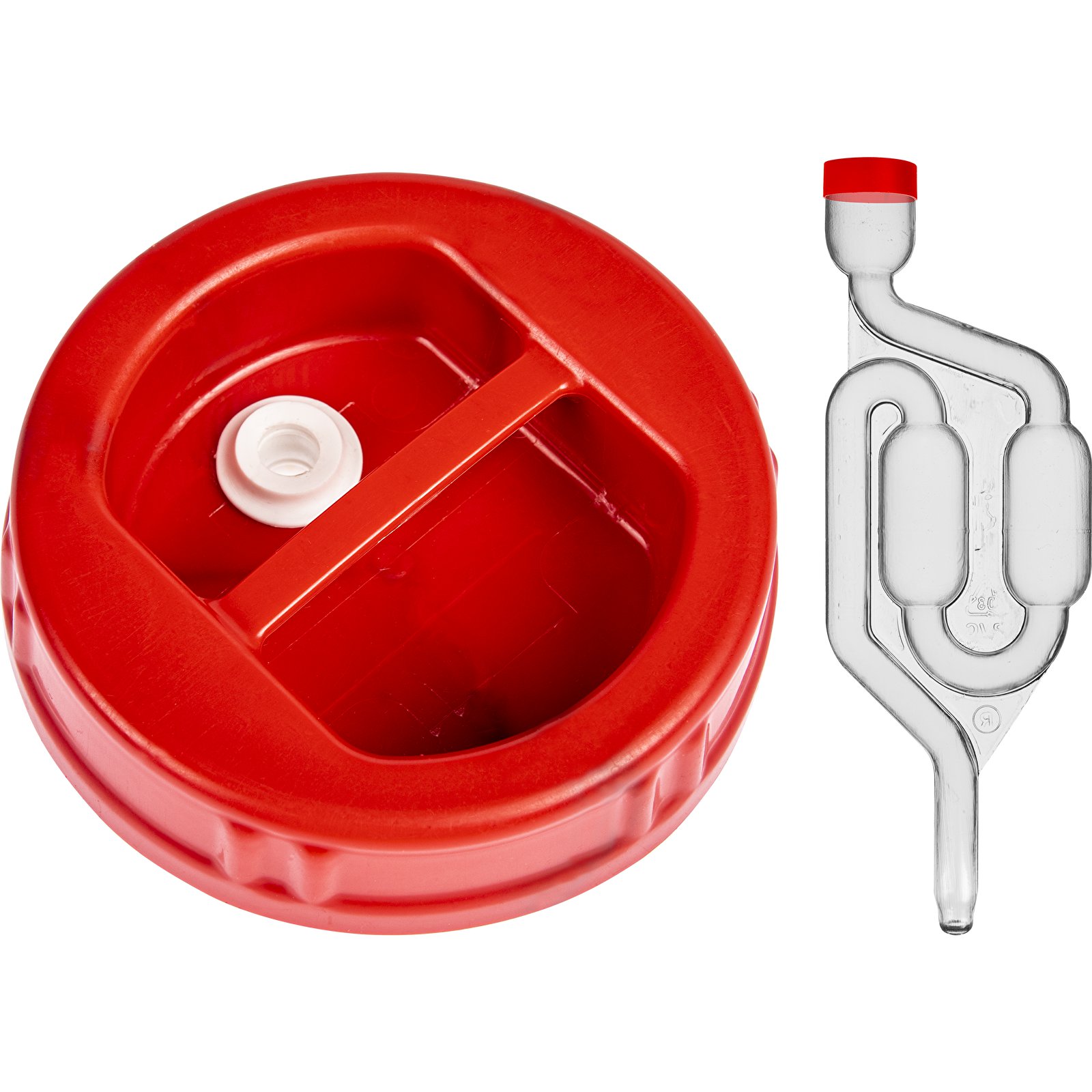 - 2 в 1 - инновационный, оригинальный дизайн колпачка, обеспечивающий, среди прочего, возможность установки пробки и бродильной трубки, необходимых в процессе приготовления вина.