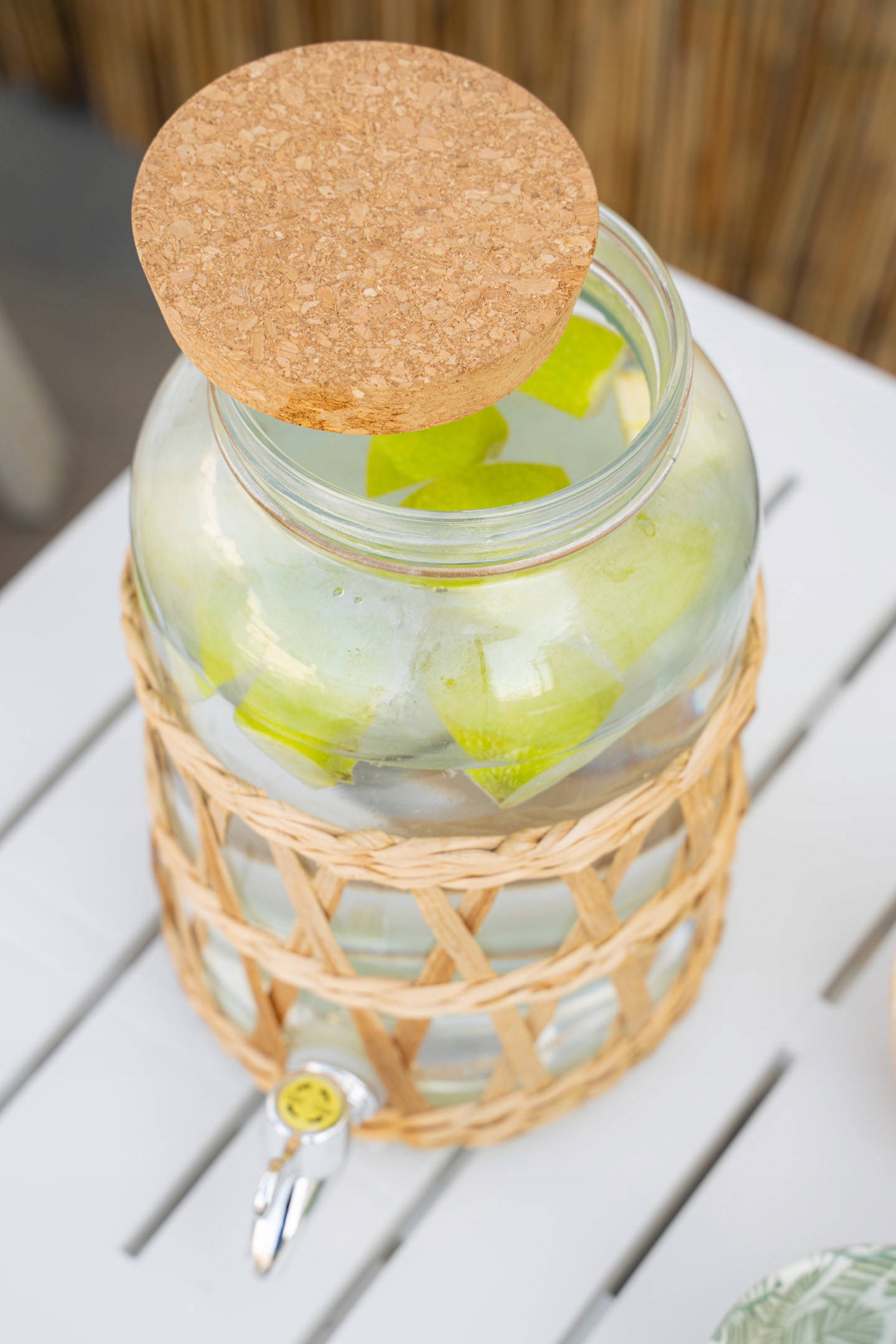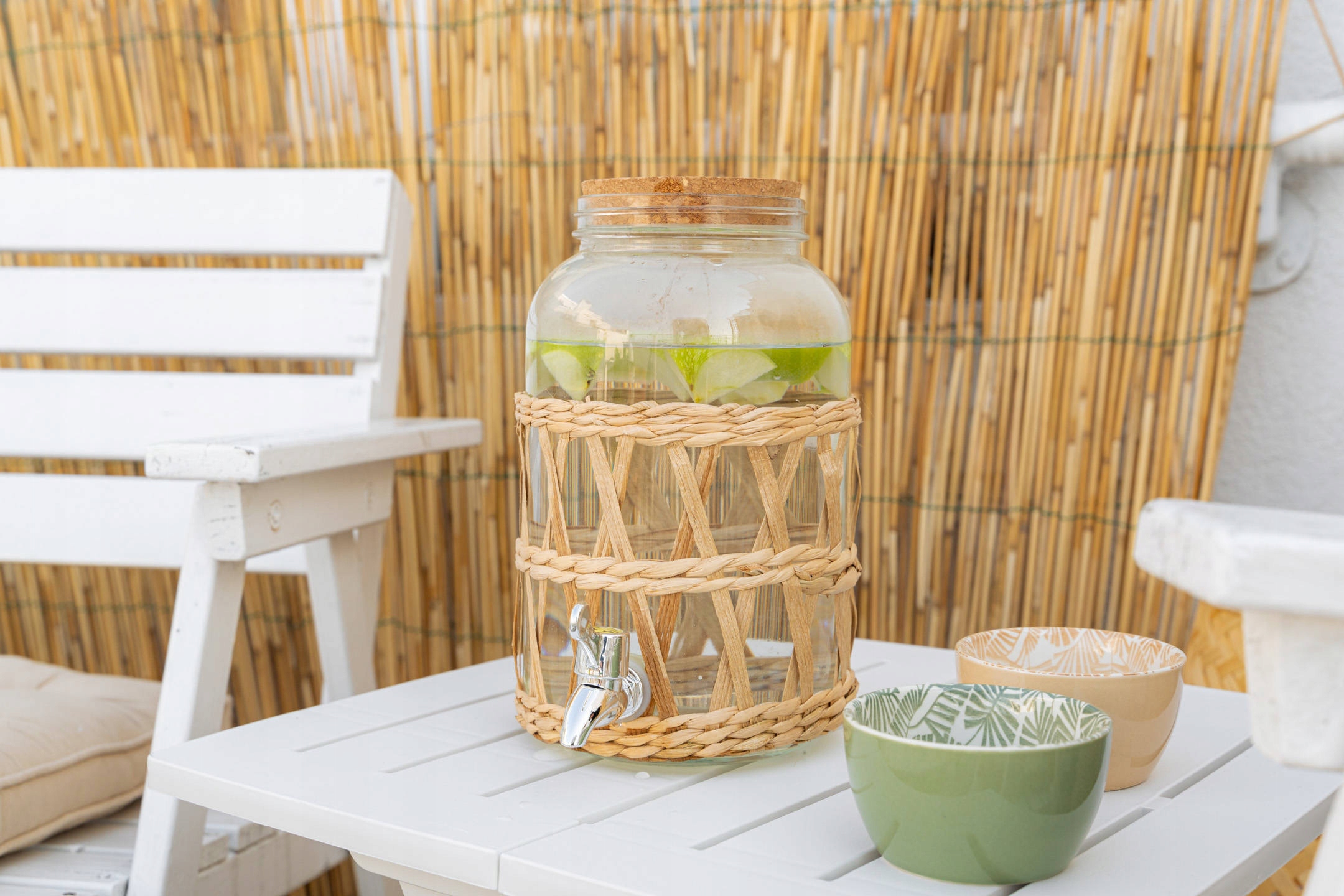 - Выдающийся стиль. Баночка с краном декорирована соломкой, что придает ей атмосферу летнего бохо, напоминающего экзотический Бали. Помойте банку вручную, чтобы элементы соломинки сохранили свой внешний вид.