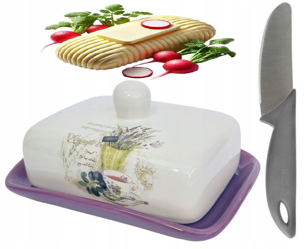 банкетный пахтерная лаванда была сделана из керамики, которая выглядит красиво на кухонном столе или столе. Преимущество керамики заключается в том, что она не поглощает запахи, благодаря которого хранится, подготовлены и обслуживают продукты, не теряют своего аромата и вкуса. Дополнительное очарование обеспечивает свою интересную форму и привлекательное украшение, которое идеально соответствует любой столовой. Картон. Нож облегчит нам приготовить бутерброд, на котором мы хотим распространять масло, маргарин, пасту или сыр. Клинок ножа, изготовленный из высококачественной нержавеющей стали, обеспечивает точную резку и равномерное распределение масла на хлебе или рулете. Эргономическая ручка облегчает определенную сцепление, обеспечивая контролируемое и мягкое использование ножа. нож удобный в руке, и лезвие имеет форму, чтобы тщательно распространять продукты на хлебе. Добавив его в банку с джемом, вы создадите сладкий подарок