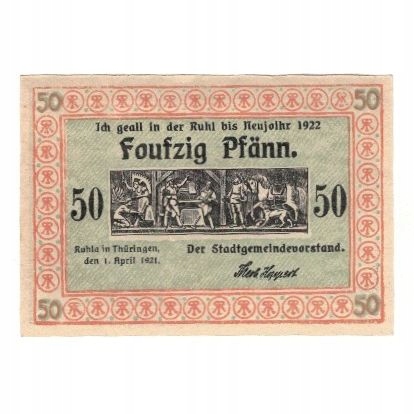 Банкнот, Німеччина, Ruhla Stadte, 50 пфенігів, особ