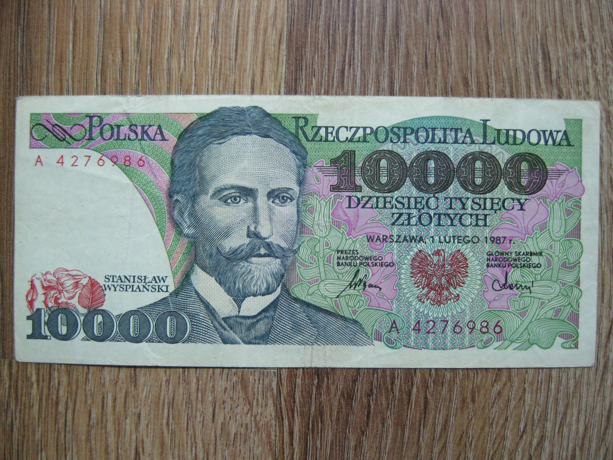 BANKNOT PRL 10000 ZŁ. 1987 ROK SERIA A WYSPIAŃSKI