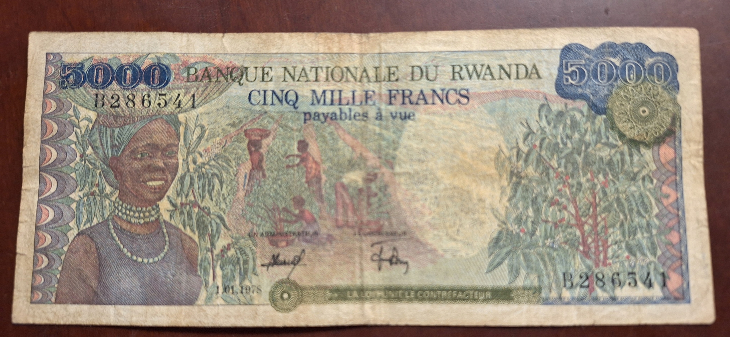BANKNOT RWANDA 5000 FRANCS 1978 ROK RZADKI STARSZY