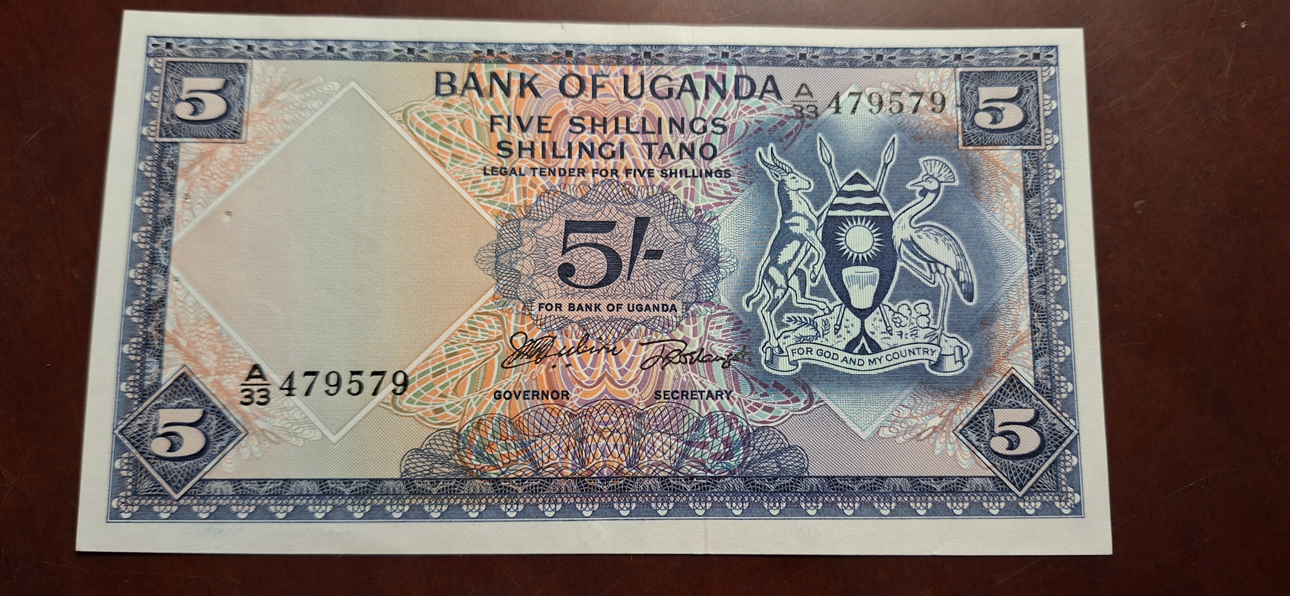 BANKNOT UGANDA 5 SHILINGS 1966 ROK RZADKI