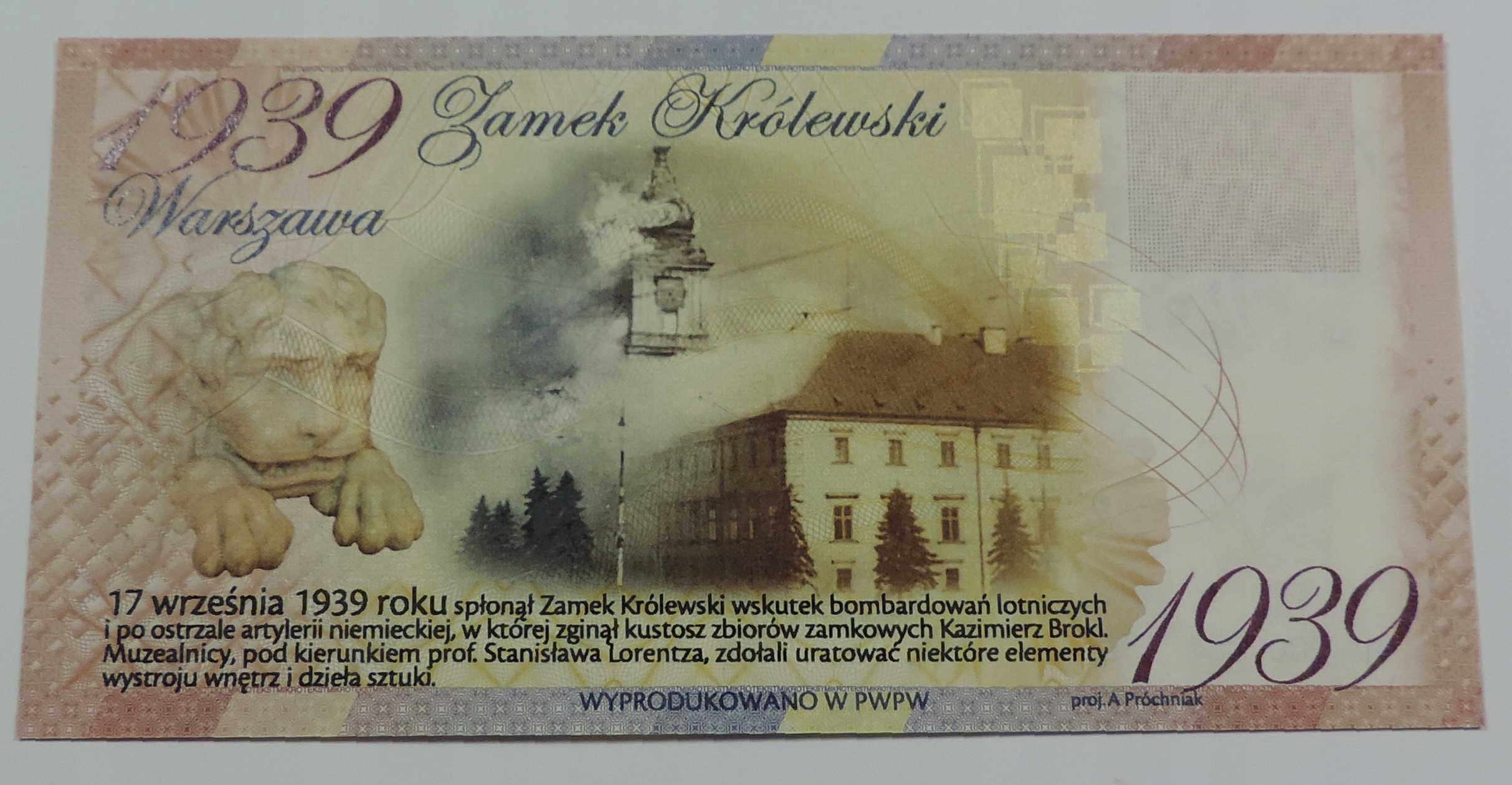 Банкнота - тестовая стоимость - PWPW - Королевский замок в Варшаве -OY3909