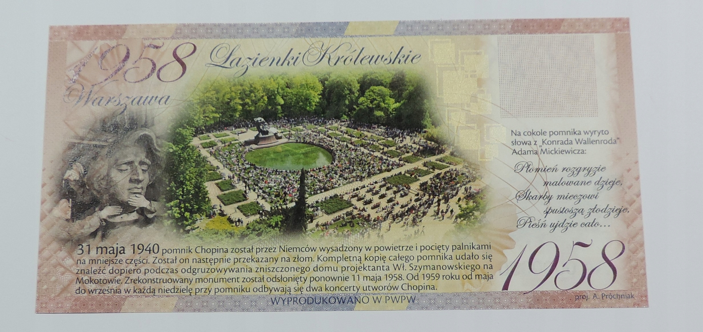 Банкнота - тестовая стоимость - Pwpw - Krolewskie łazienki в Warsaw -oy3919