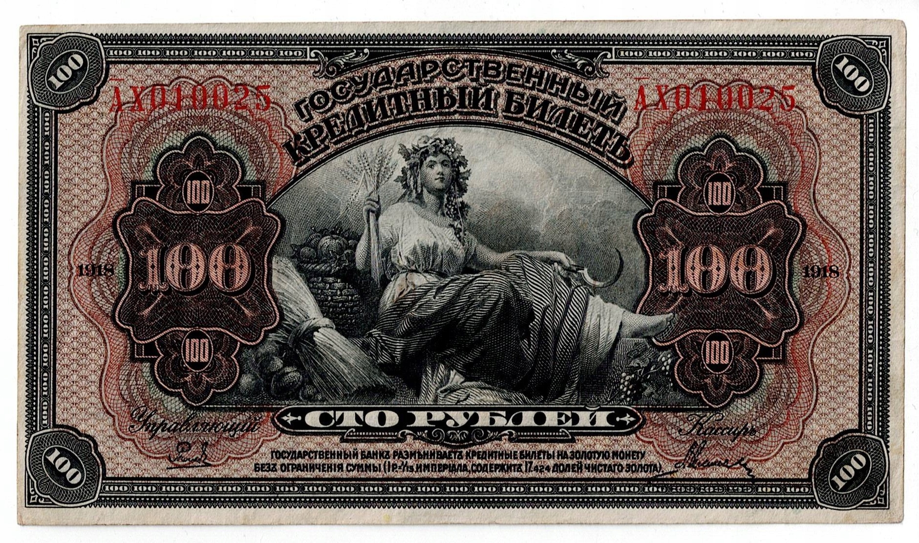 Описание: Банкнота России 100 рублей 1918 года. Сибирь