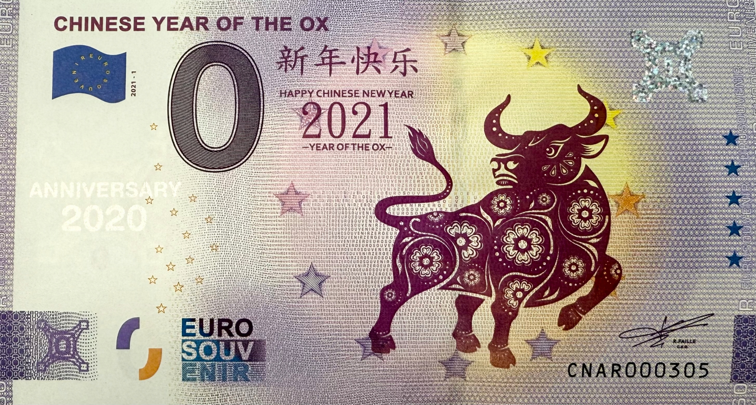 Банкнота 0 євро 2021 року (Китай) - Китайський рік бика