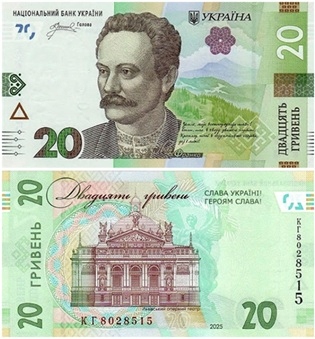 Банкнота 20 гривен (2025 г.) Украина - Иван Франко
