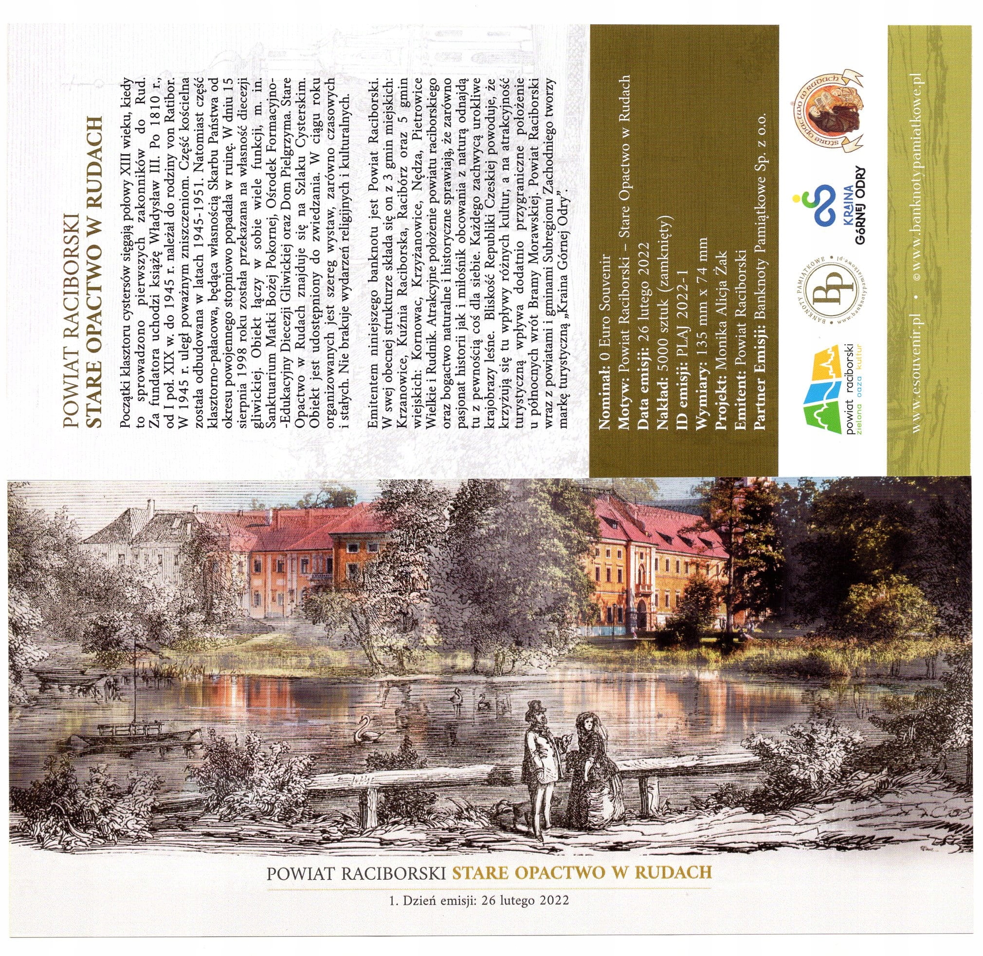 2022 год Банкнота номиналом 0 евро Рацибужский уезд - Старое аббатство в Рудах
