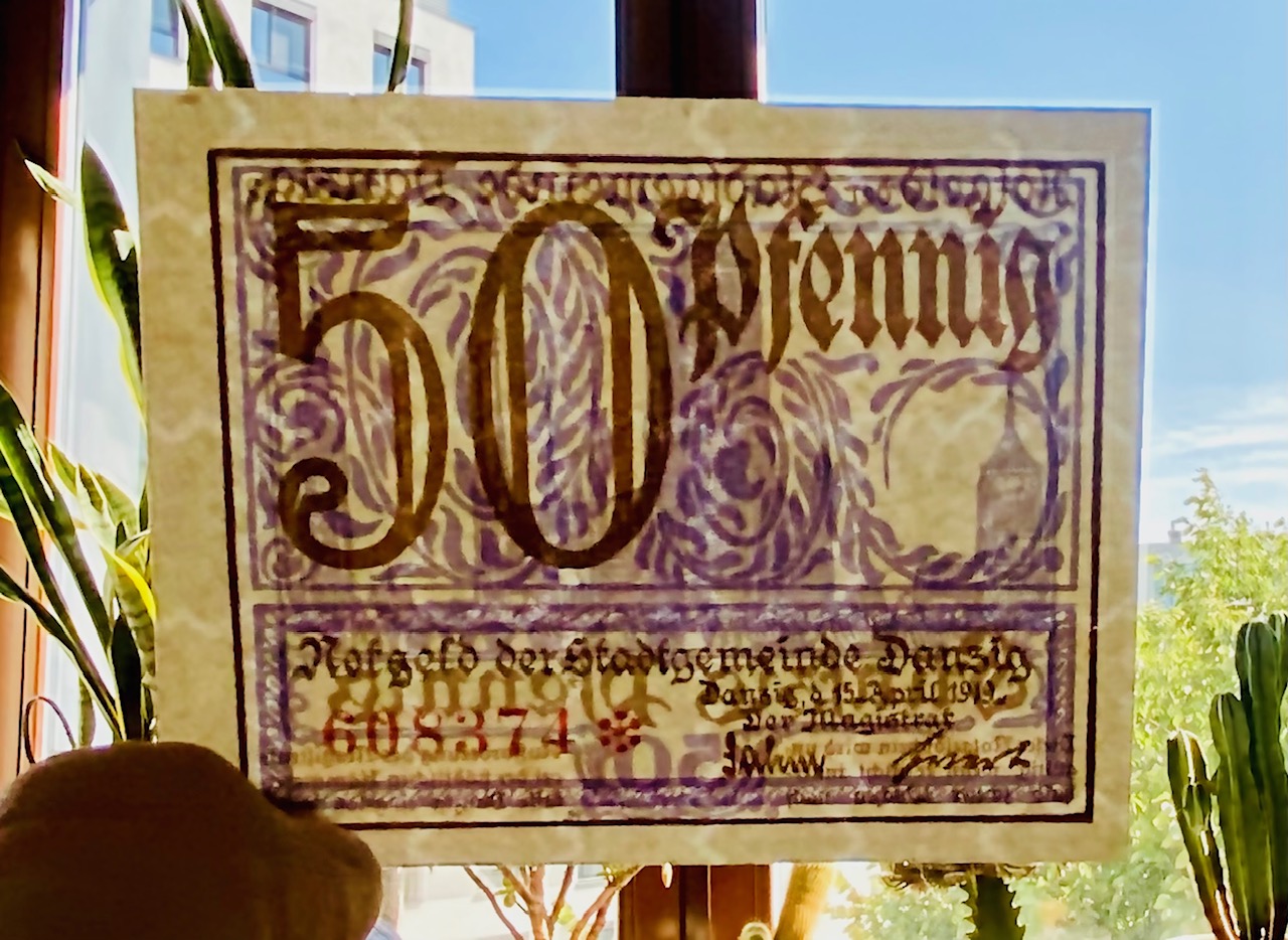 Банкнот 50 Pfennig 1919 БЕСПЛАТНЫЙ Город Гданьск