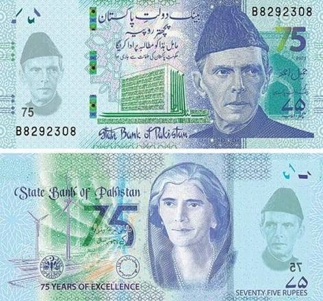 Банкнота 75 рупій 2023 (Пакистан) - 75-річчя Банку Пакистану