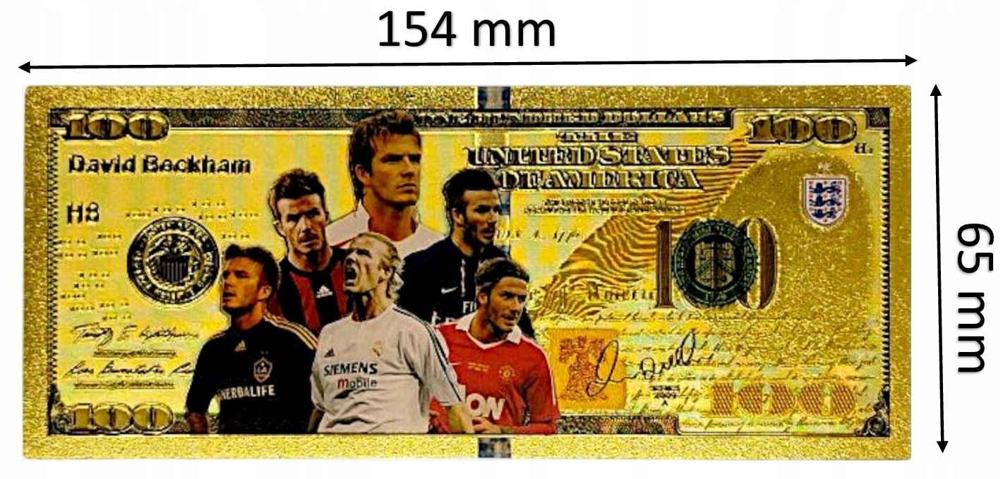 прекрасно изготовлен из ПВХ, банкнота с изображением Бекхэма, покрытого золотой фольгой.