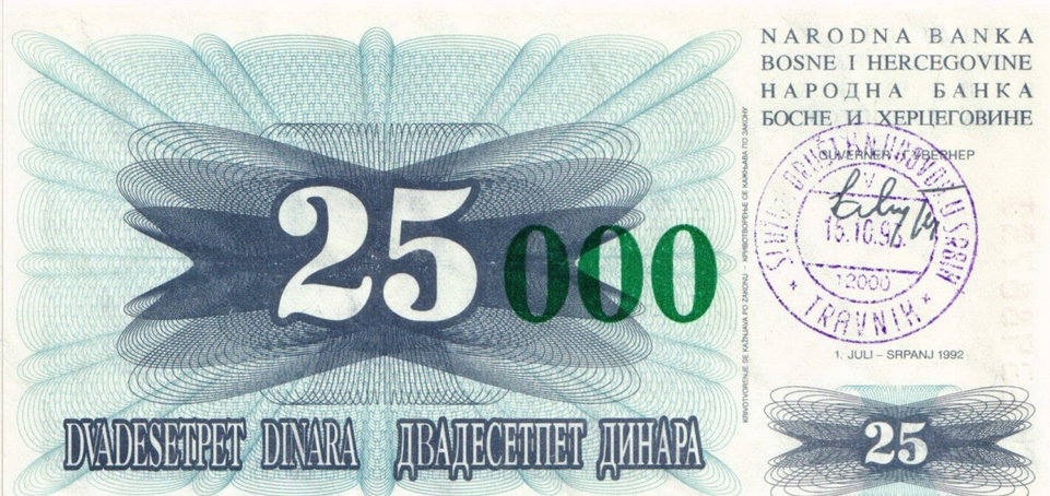 БАНКНОТА БОСНИИ И ГЕРЦЕГОВИНЫ 25 000 ДИНАРА