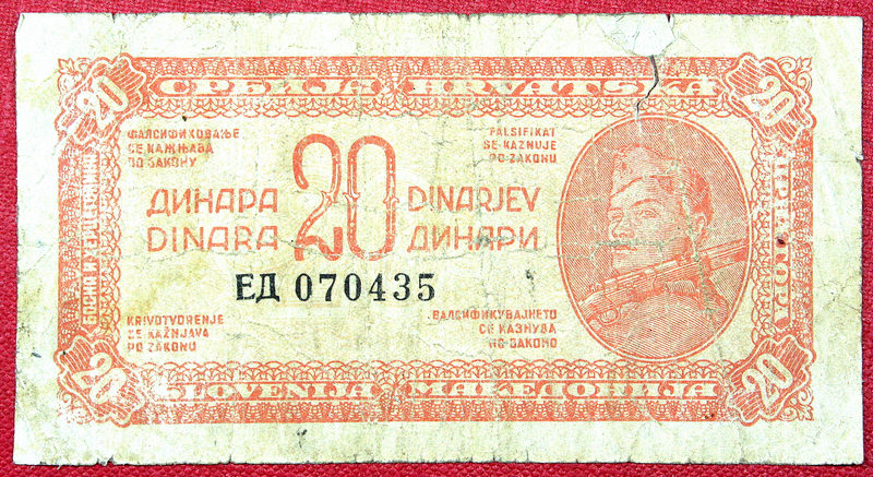 БАНКНОТА ДЛЯ КОЛЛЕКЦИИ ЮГОСЛАВИИ 20 ДИНАРОВ 1944 ГОДА