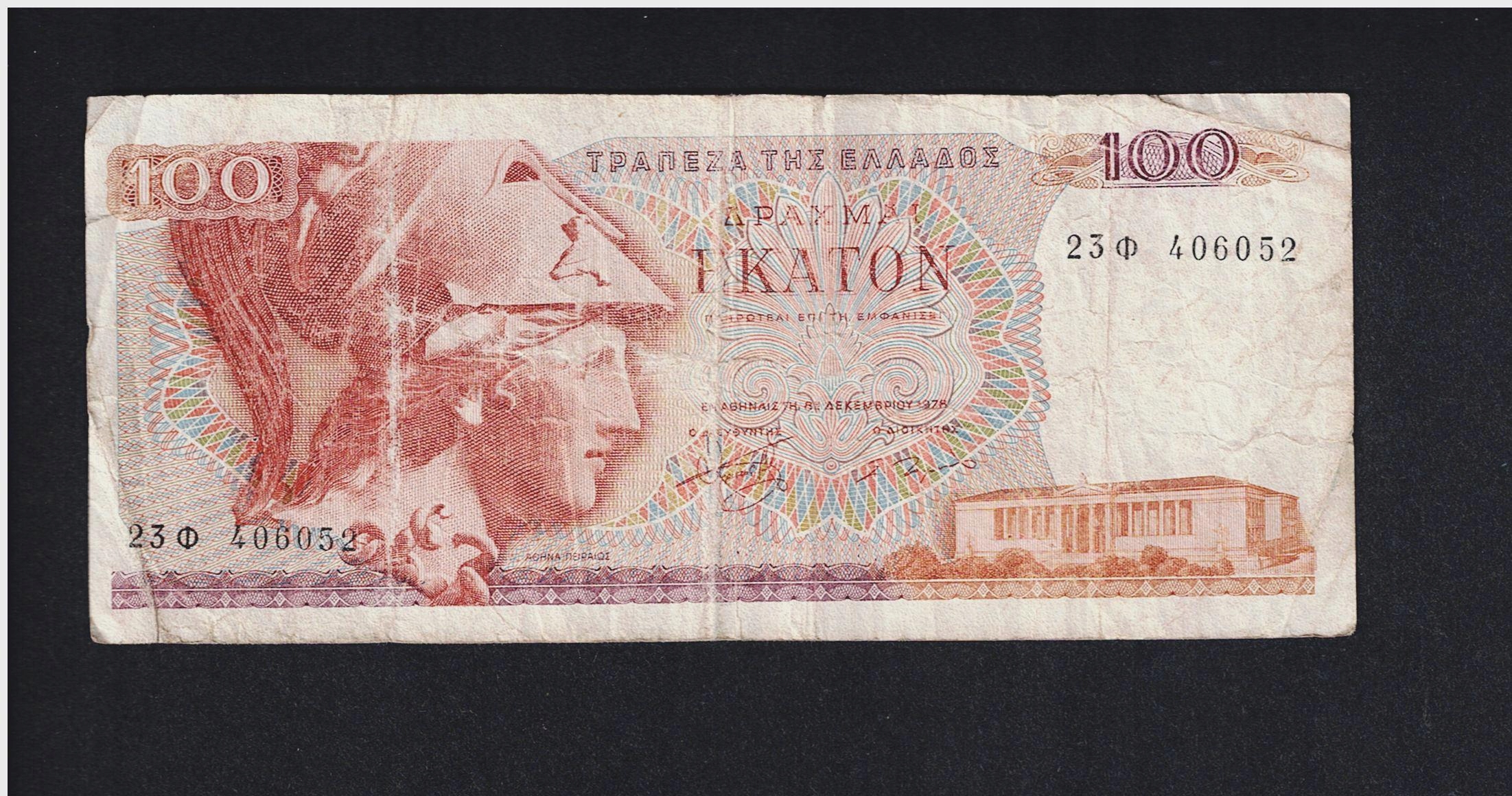 БАНКНОТА ГРЕЦИИ 100 ДРАХМ 1978 ГОДА