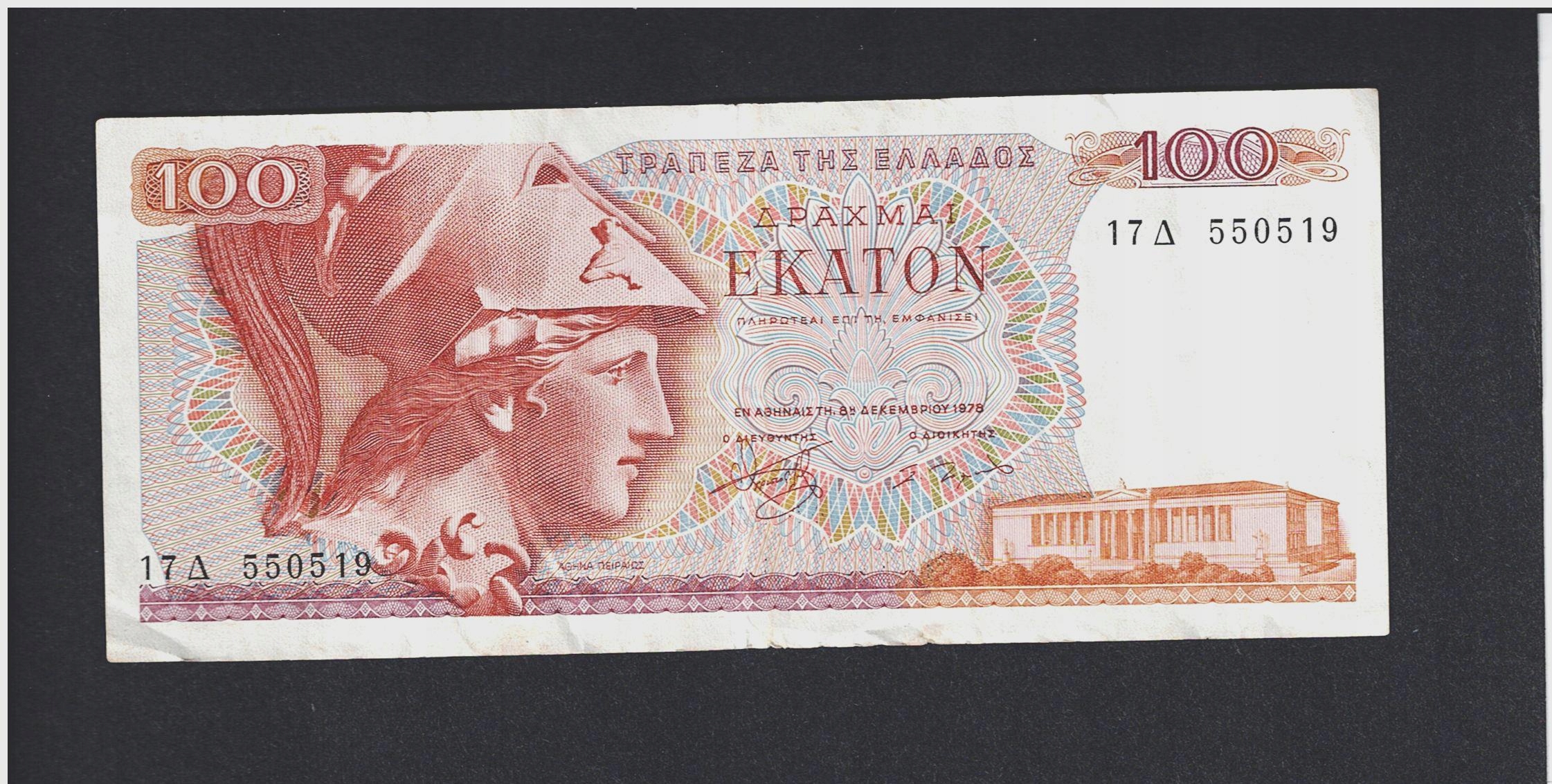 БАНКНОТА ГРЕЦІЯ -- 100 ДРАХМ -- 1978 рік