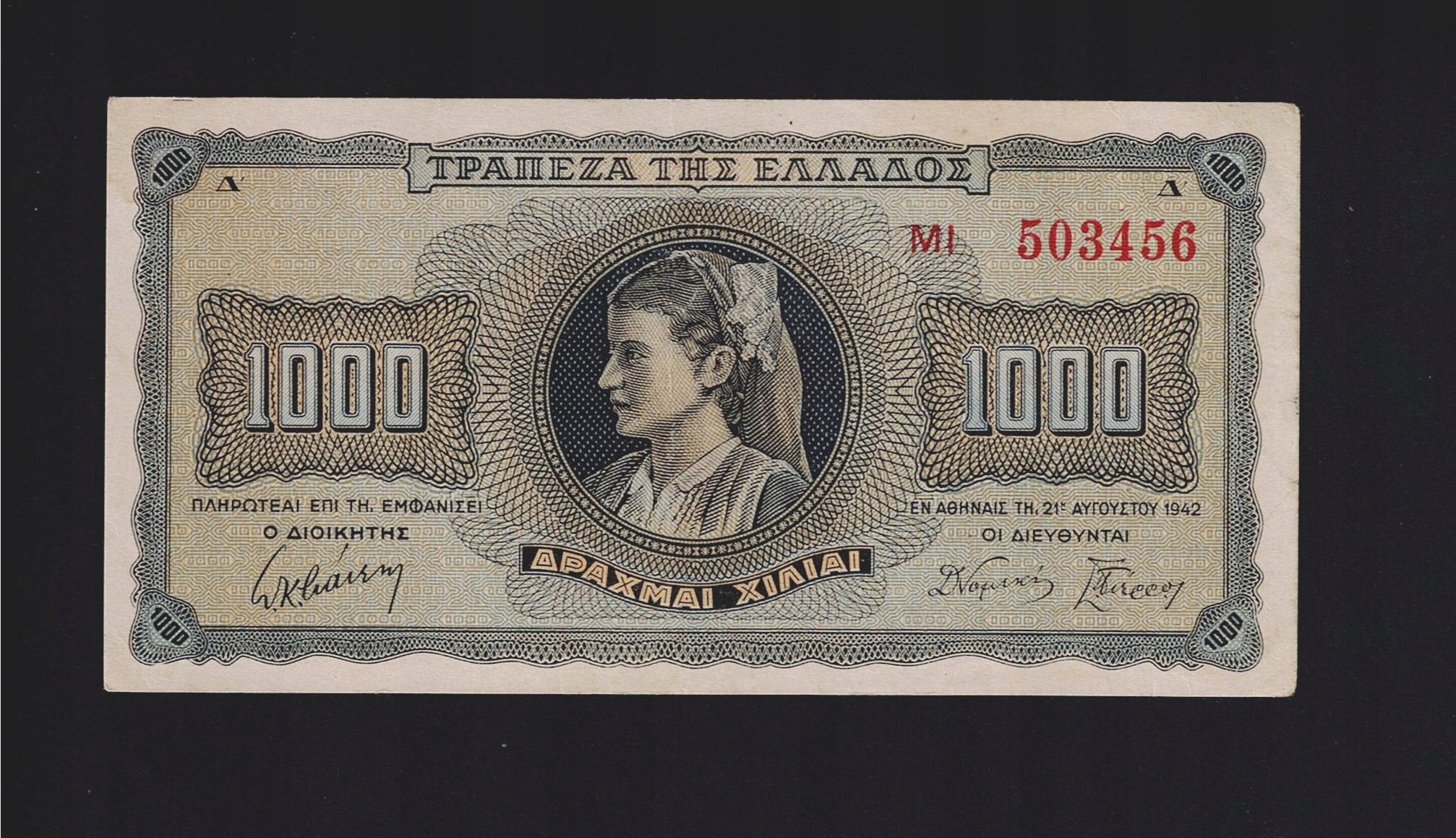БАНКНОТА ГРЕЦІЯ -- 1000 ДРАХМ -- 1942 рік