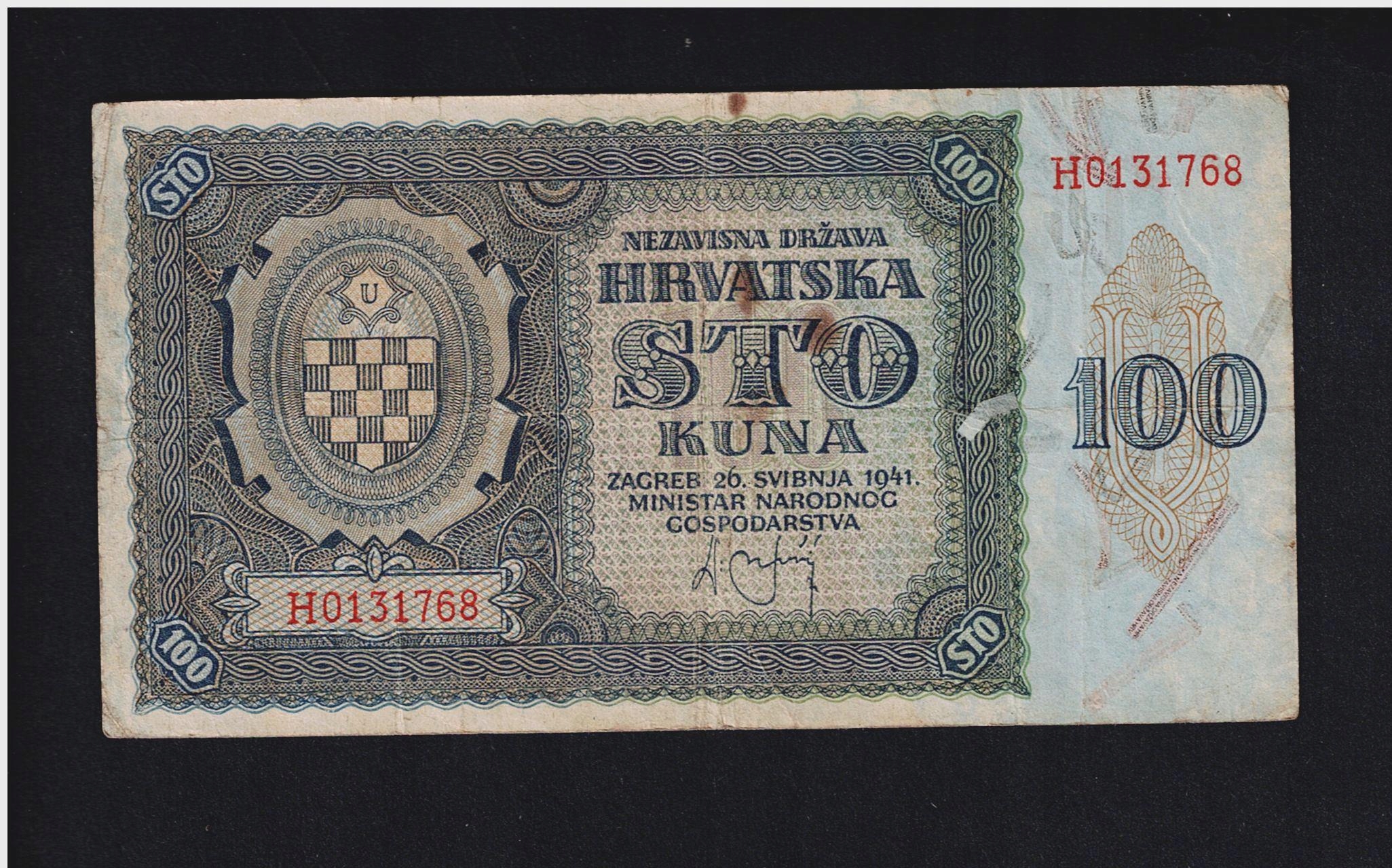 БАНКНОТА ХОРВАТІЯ -- 100 куна -- 1941 рік