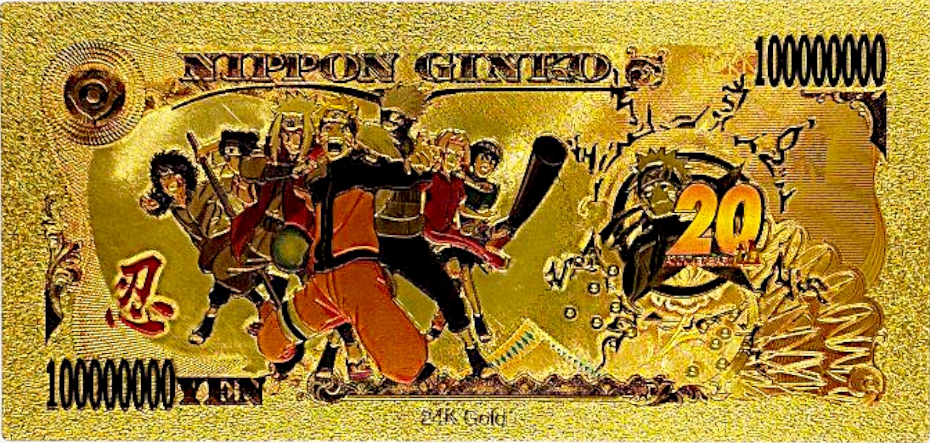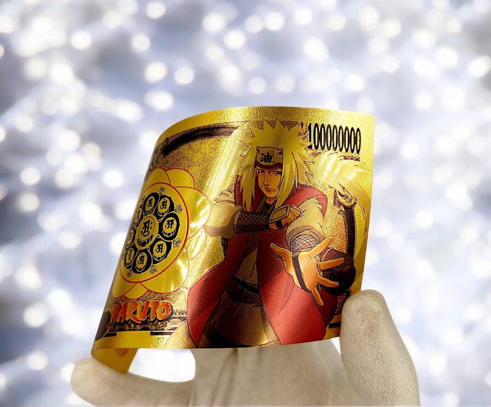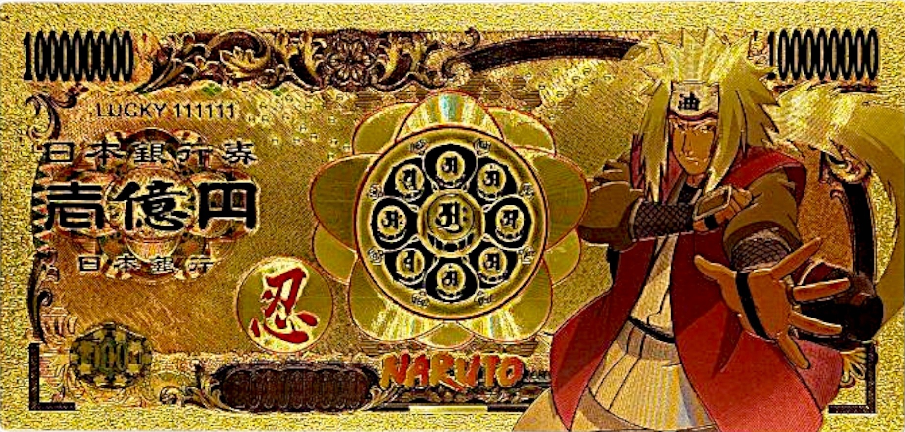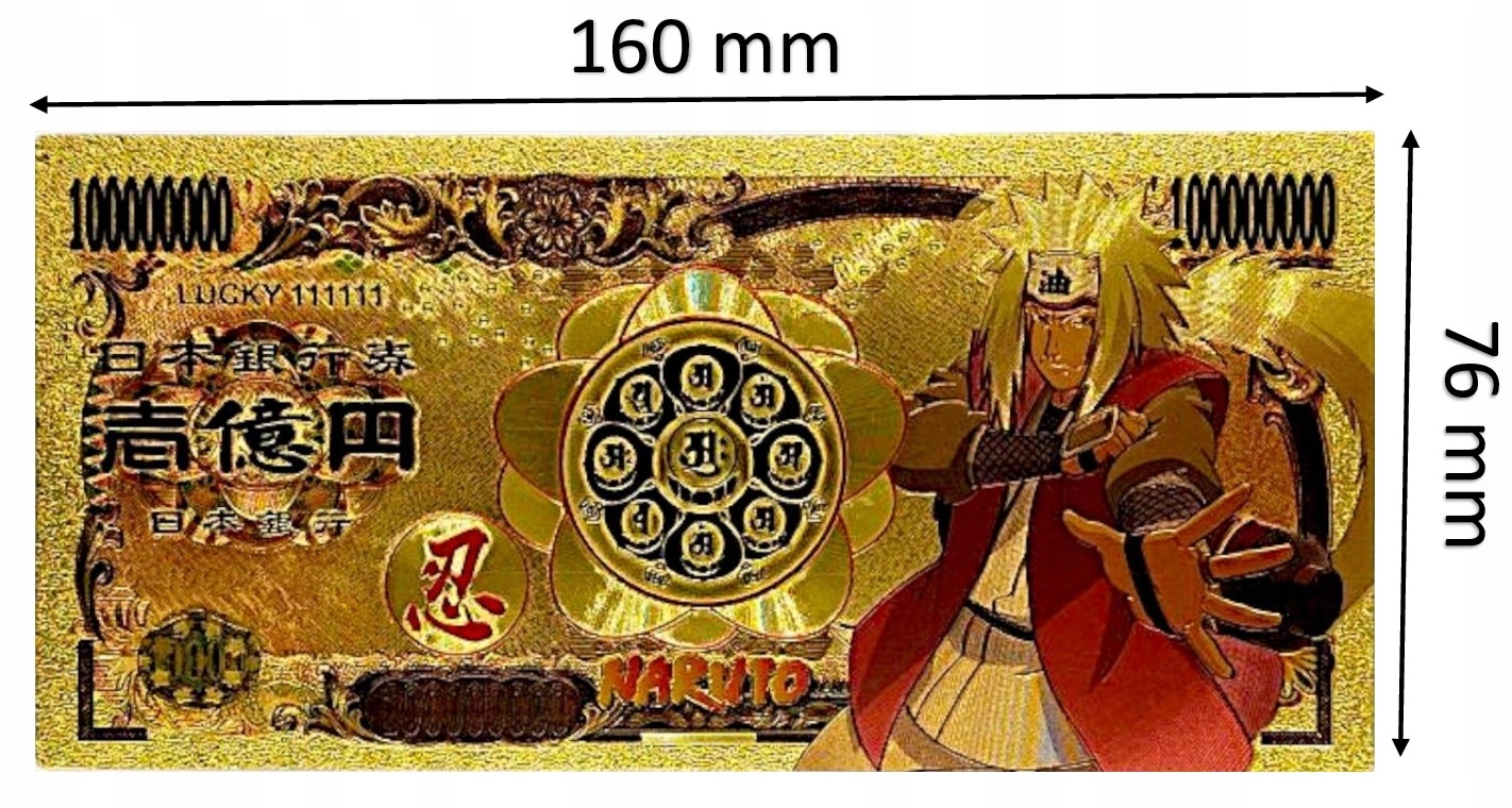 уникальная, золотаная банкнота коллекционера с изображением одной из самых знаковых фигур аниме Наруто-Джирайи, известной как «Эро-суннин», легендарный Саннин, учитель Наруто и мастер мудрости. H2>
