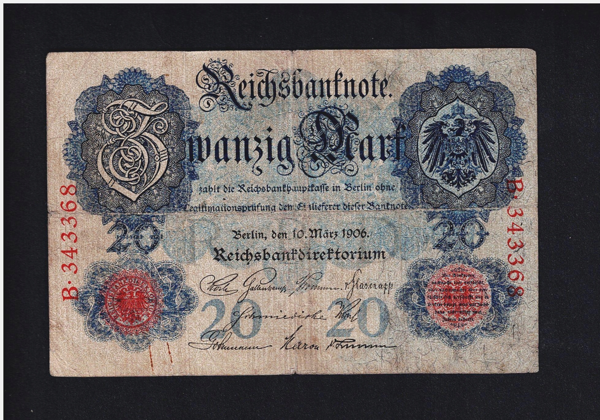 БАНКНОТА НІМЕЧЧИНА -- 20 марок -- 1906 рік , серія Б