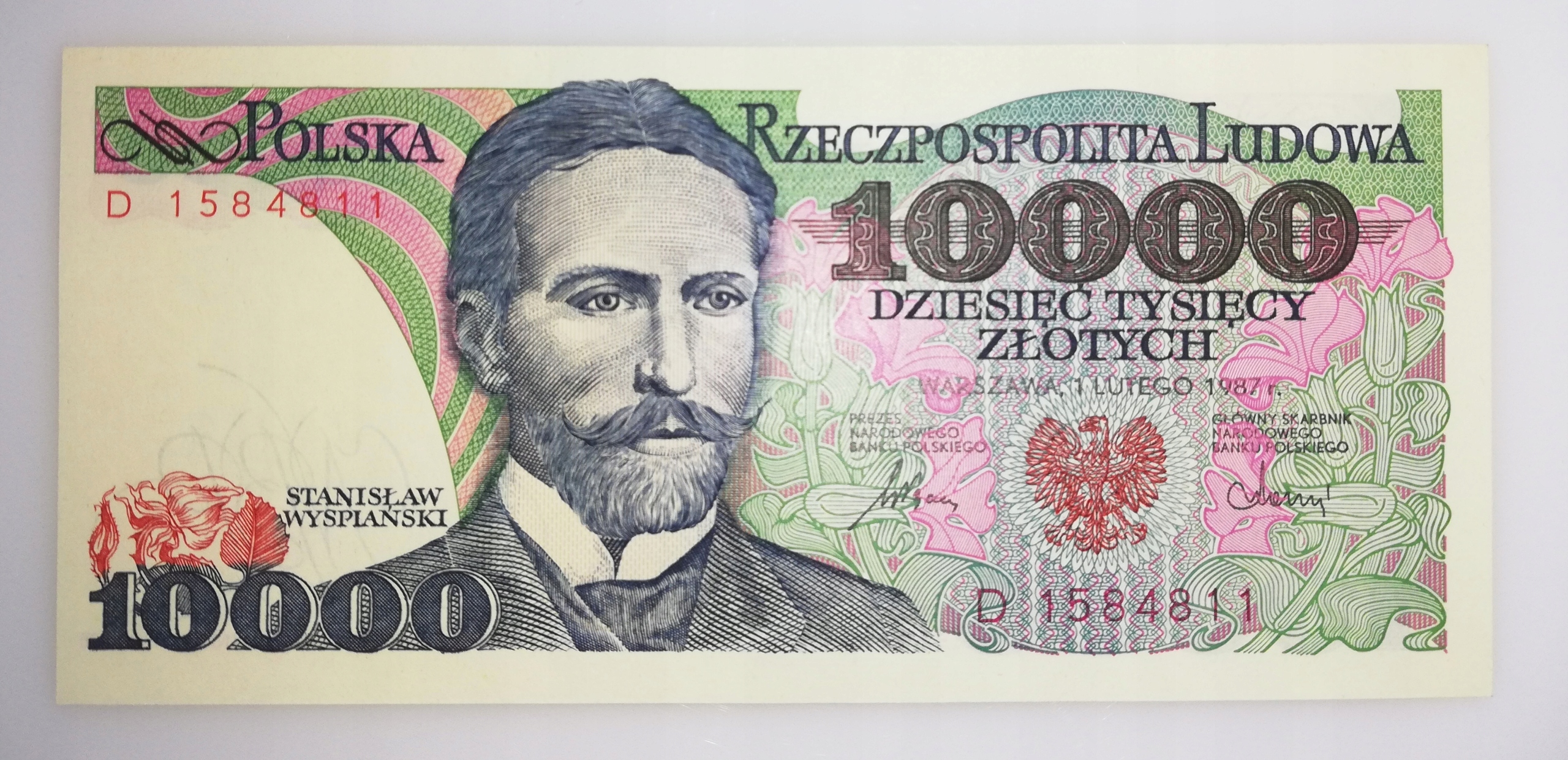 Банкнота номіналом 10 000 PLN WYSPIAŃSKI 1987 серії D UNC стан PRL
