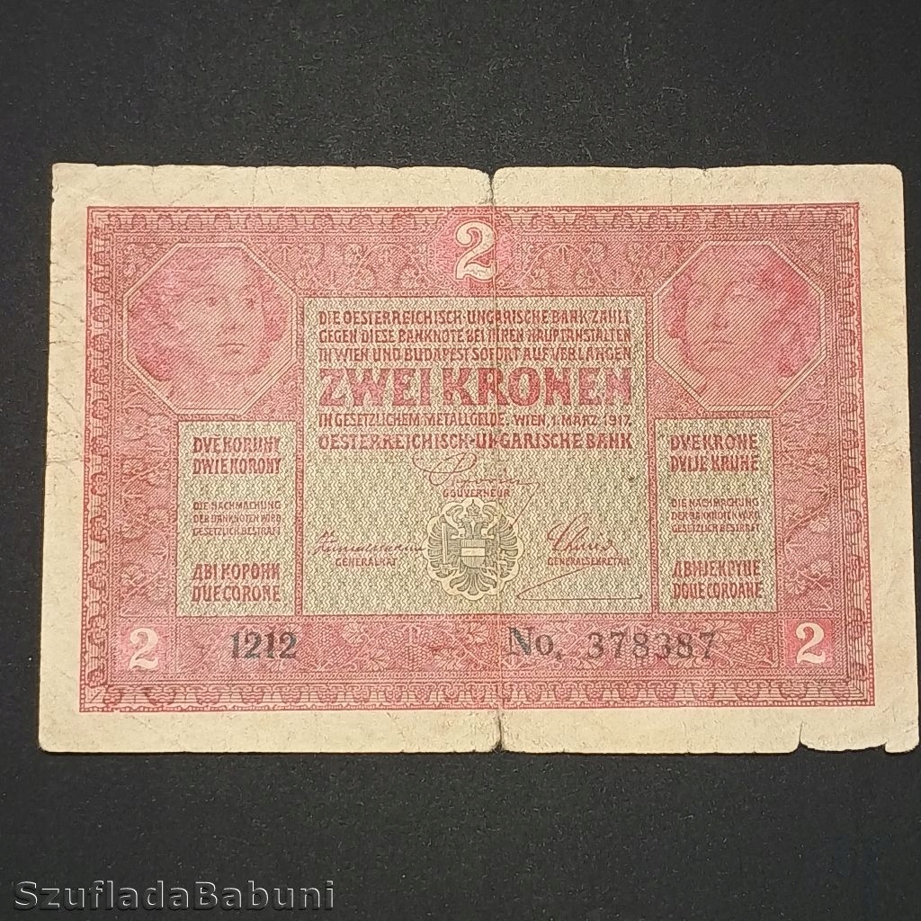 Банкнота номиналом 2 кроны 1917 года, Австро-Венгрия.
