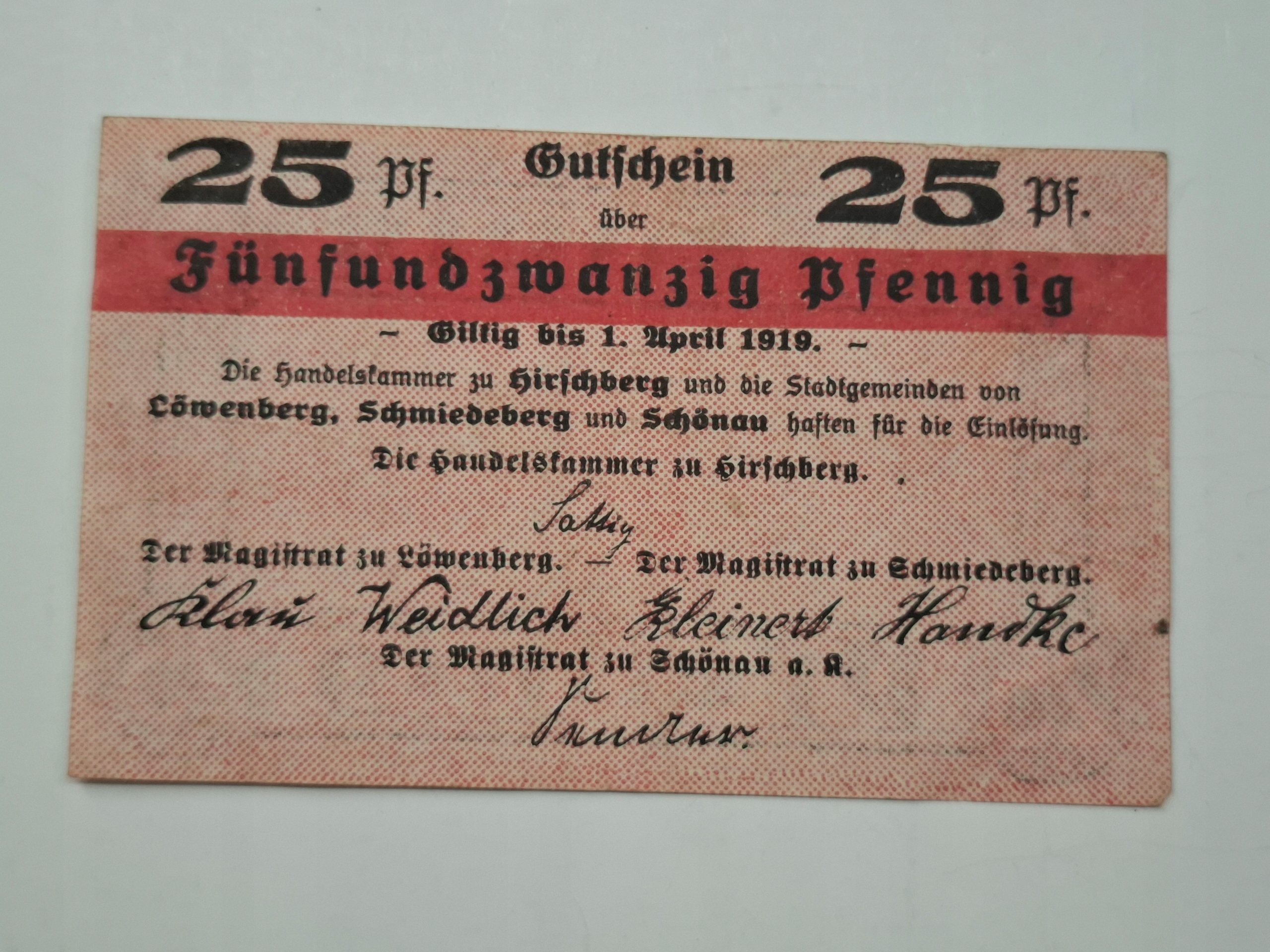 Банкнота Notgeld Hirschberg Jelenia Góra